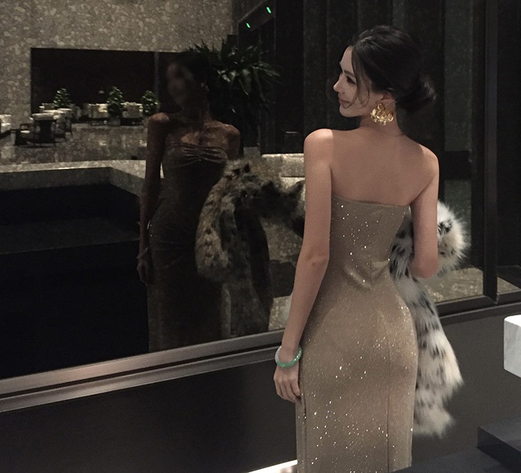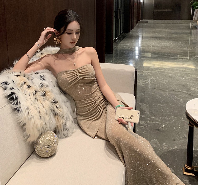 2025キラキラノースリーブワンピースレディース気質タイトワンピース韓国ファッションパーティードレスセクシーなワンピース結婚式OL正式な場合礼装着痩せして見えるドレス