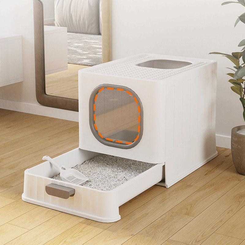 砂の飛び散ら防止 深め 砂の飛び散ら防止 高め 高い 大きめ トイレ 組み立てしやすい おしゃれ 猫 猫用 抗菌PP素材 ペット用 大容量 大型 深い 匂い対策