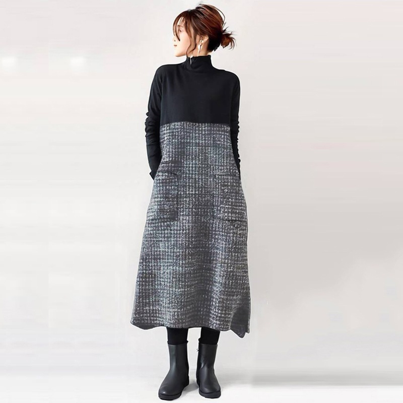 ワンピース レディース ニット 長袖 ロング丈 上品 ドッキングワンピース ワンピースオシャレ 大人セーターワンピース 韓国風 通勤 着痩せ