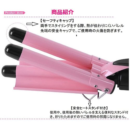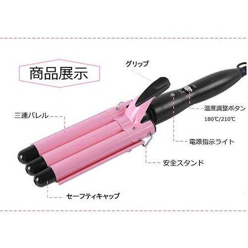 [(xaiiou]プロ仕様 Max210℃ セラミックコーディング 3連バレルのウェーブアイロン ヘアアイロン 美顔器