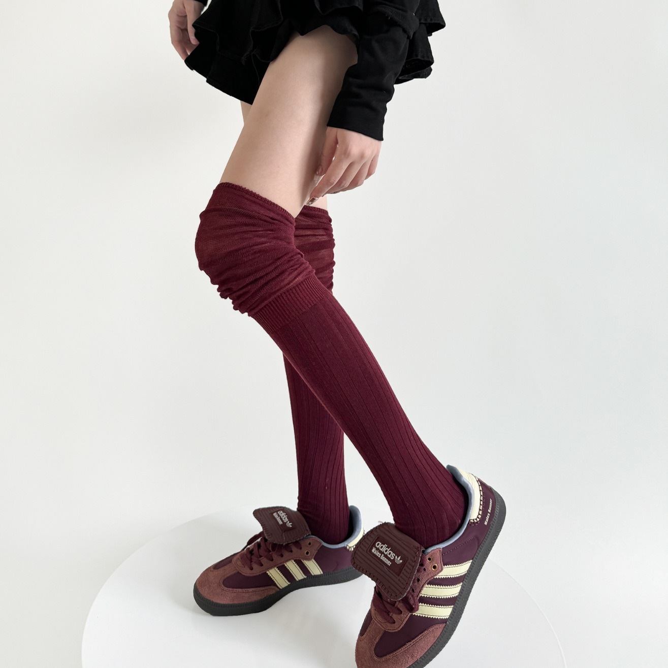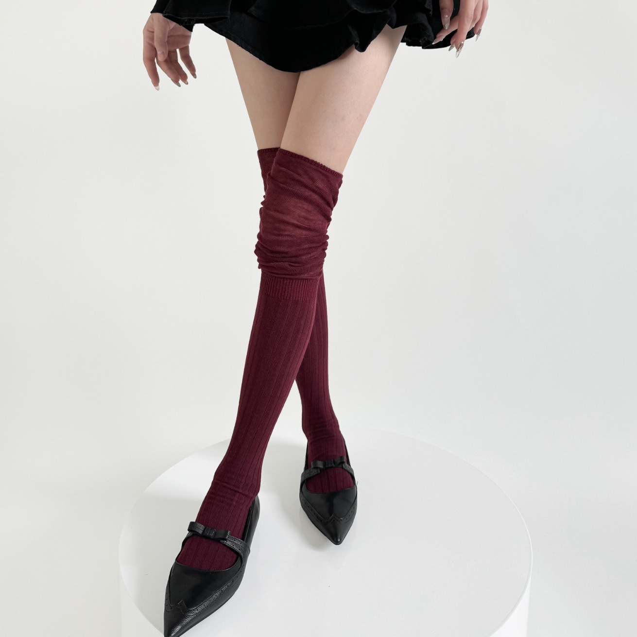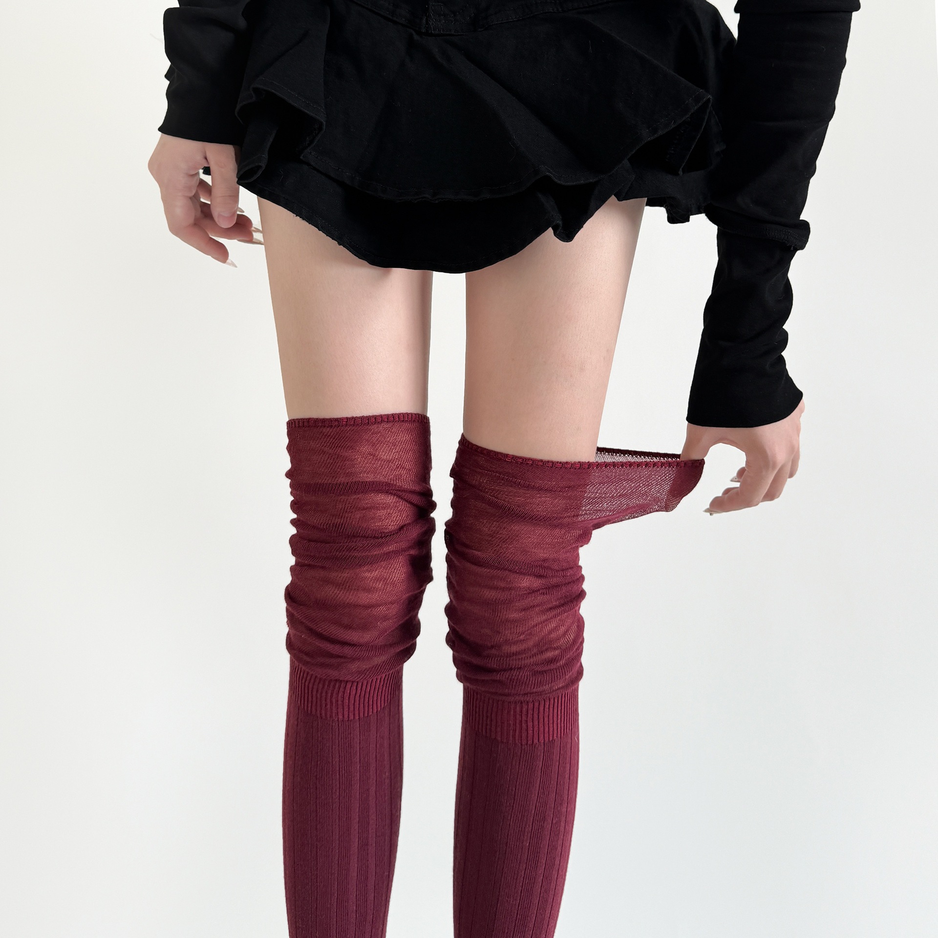 秋冬安可拉紅靴下女性のワインレッドのショーモデルは膝靴下安可雷ストッキングをつなぎ合わせた その他 靴下 レッグウェア