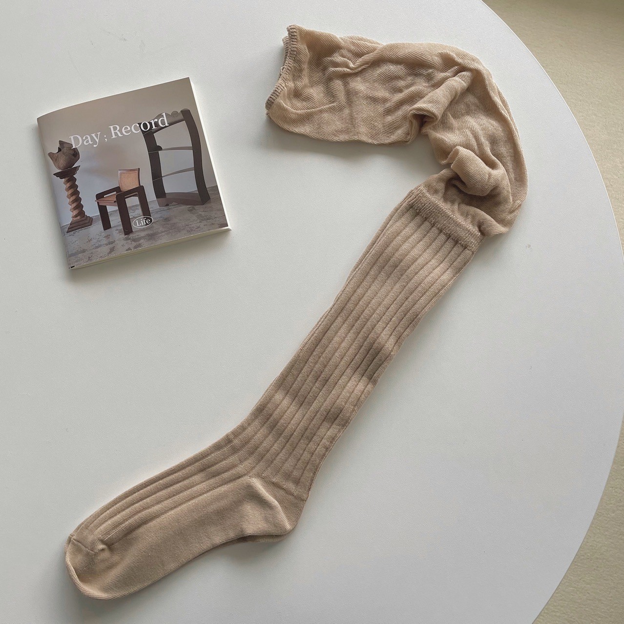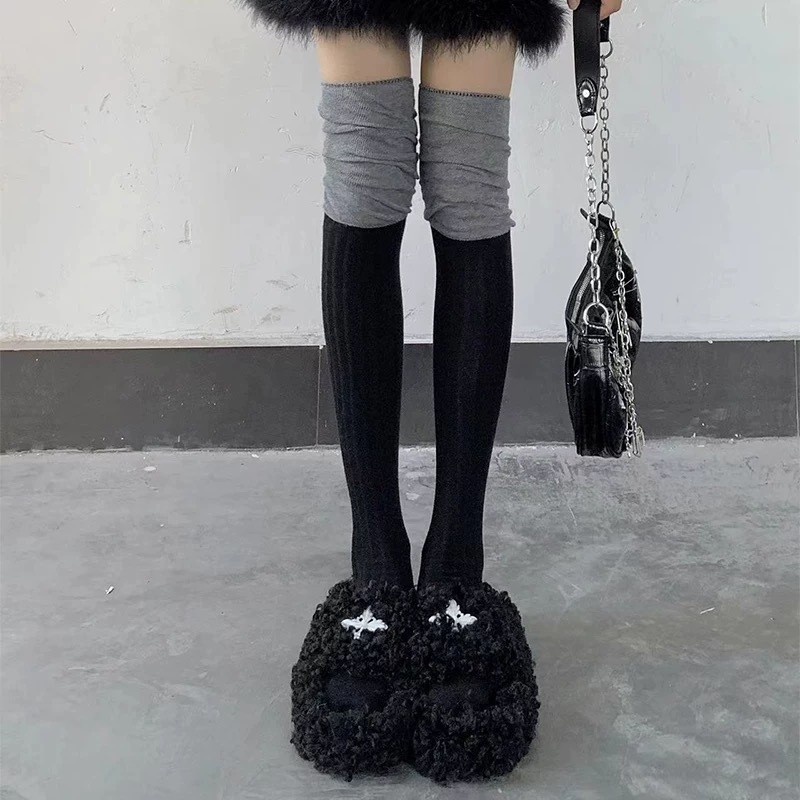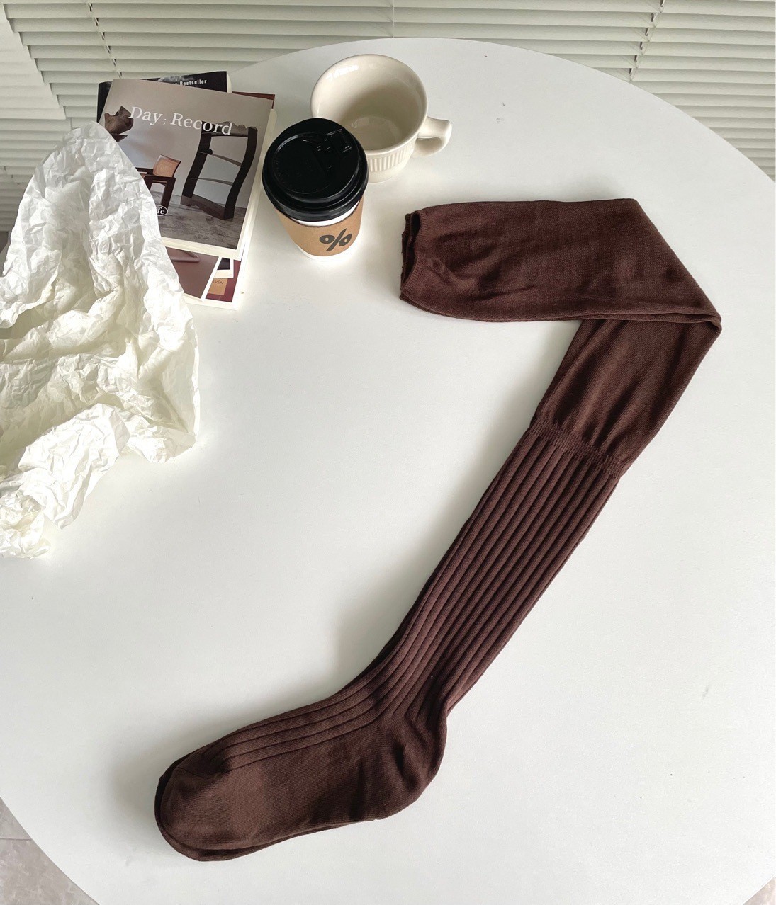 秋冬安可拉紅靴下女性のワインレッドのショーモデルは膝靴下安可雷ストッキングをつなぎ合わせた その他 靴下 レッグウェア