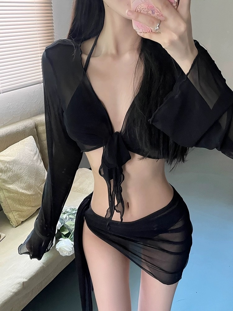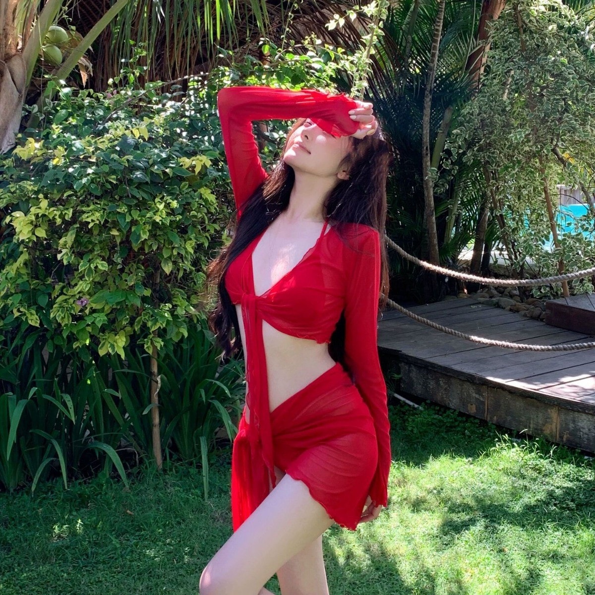 水着 2025 新作 ホリデー レッド ビキニ 4点セット 薄手 肉を隠す セパレート レディース 体型カバー 韓国ファッション ワンピース水着