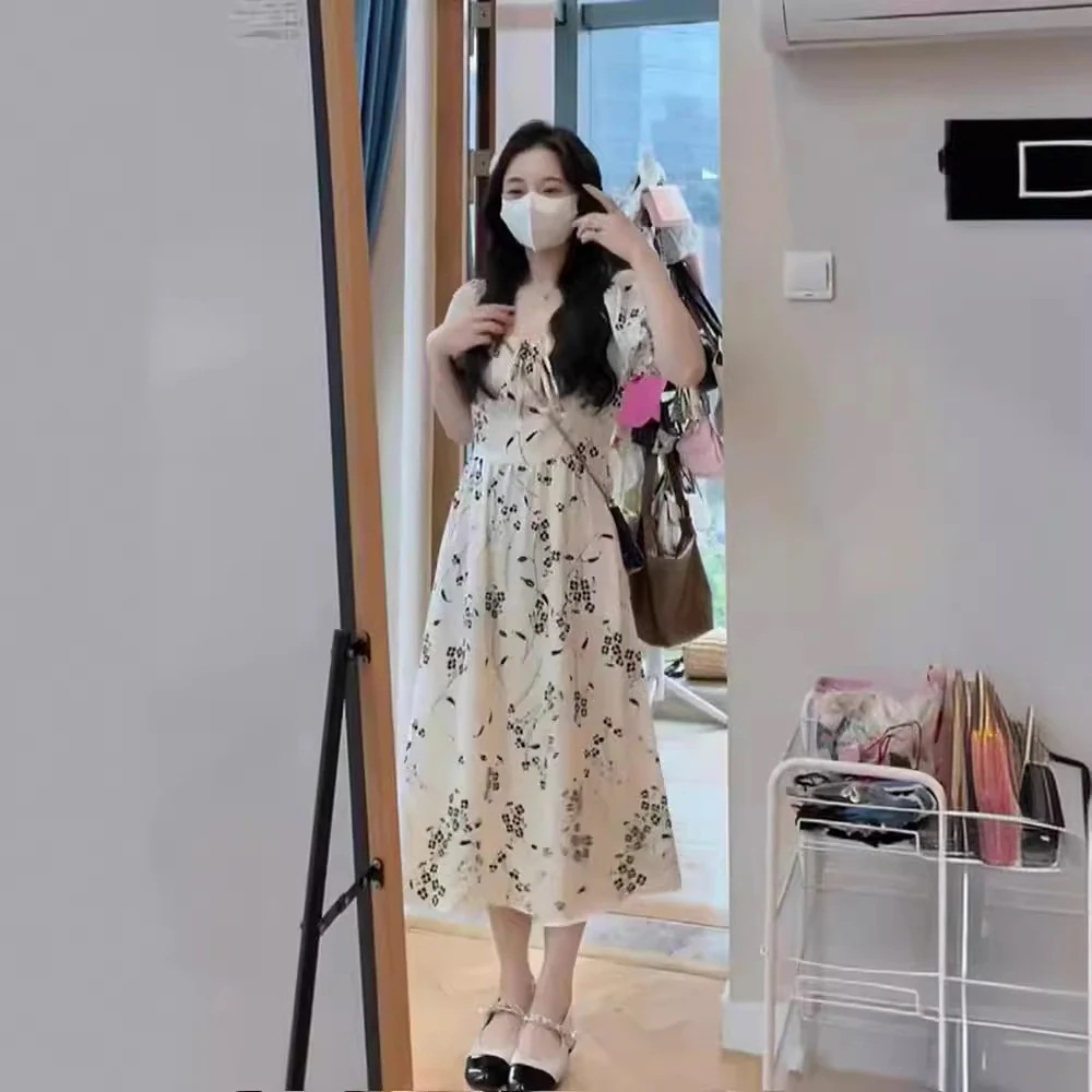 花柄ドレス夏2024新しい優しい風シフォンロングドレスドレス プリント 柄ワンピ