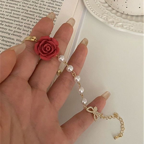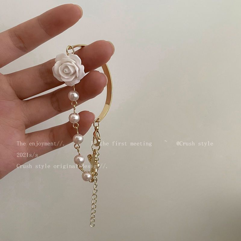 手元を美しく フラワー パール ブレスレット 着痩せ レディー バングル フレンチレトロ チェーン ハンドアクセサリー ブレスレット