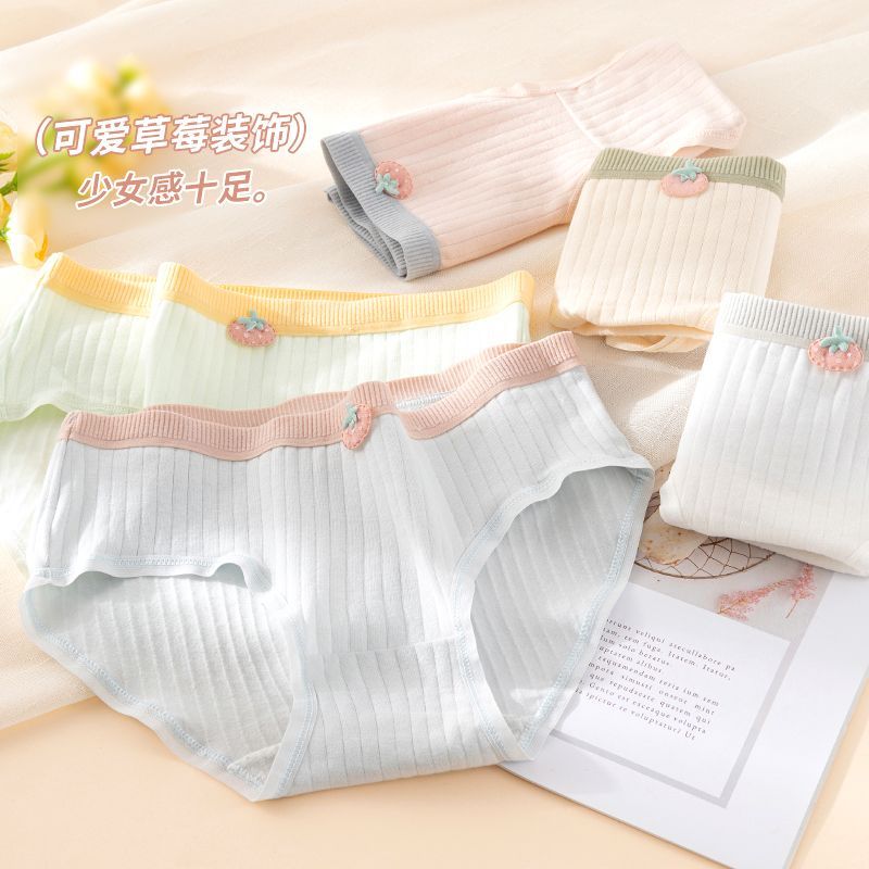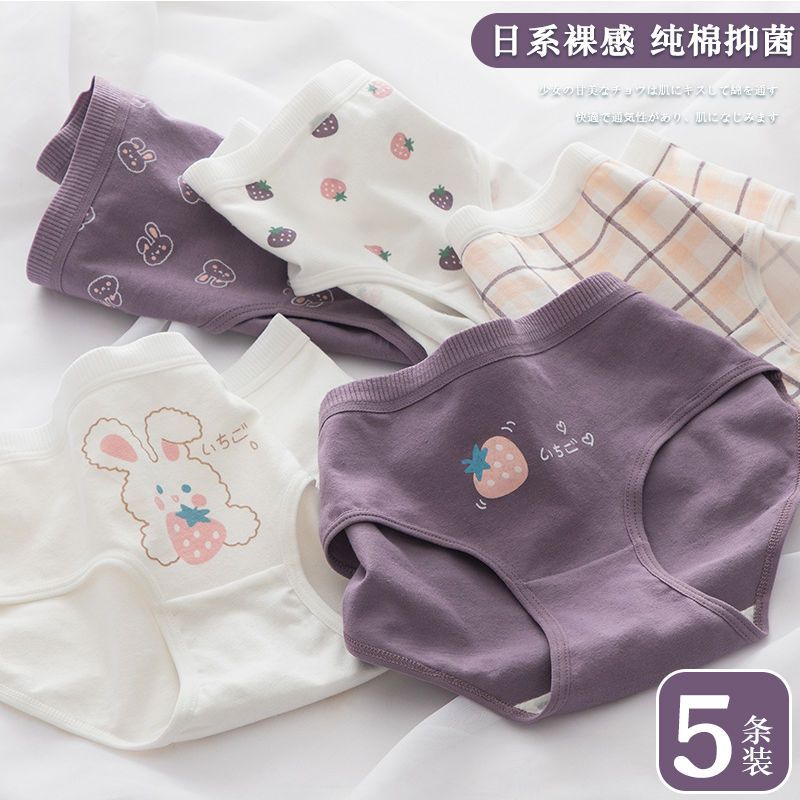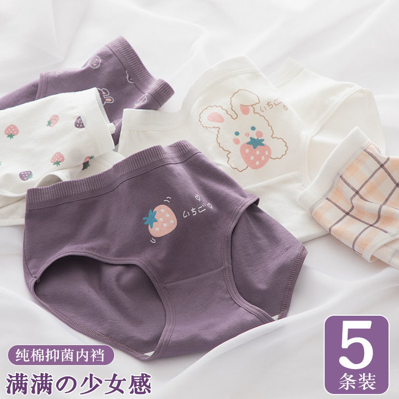 5条の下着を入れる女性の綿の中腰抗菌の大きい赤色のかわいい日本のいちごの中高校の学生の三角のズボンの頭を入れます ショーツ