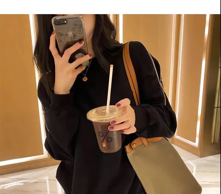 スウェット パーカー 体型カバーチュニック パーカー 春 韓国パーカー 丸ネック チューブトップ パーカー