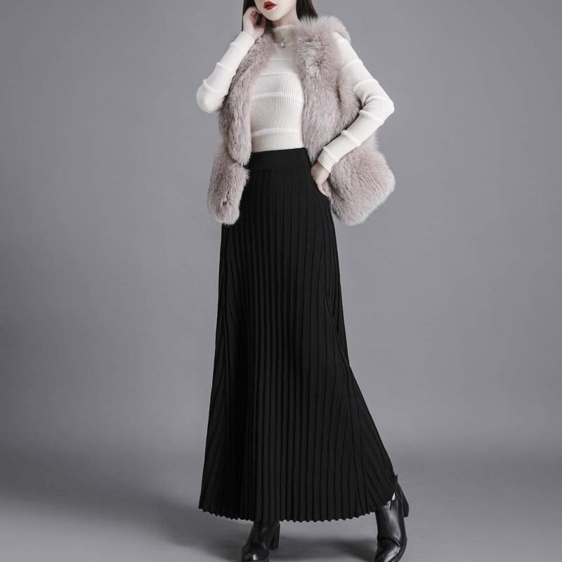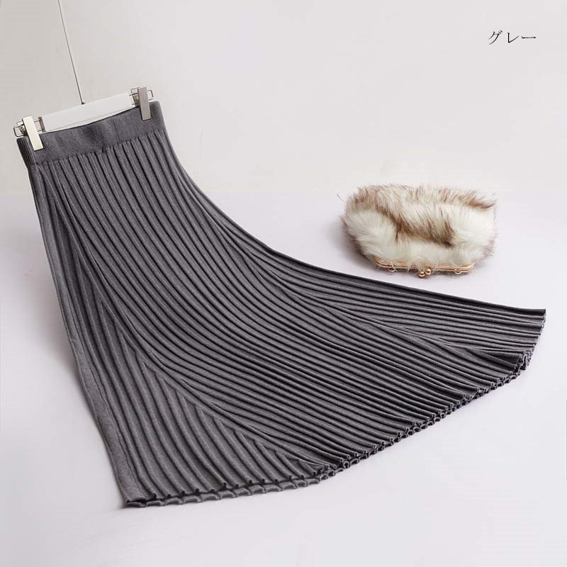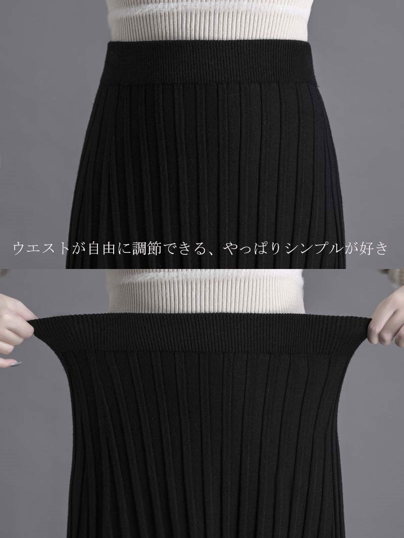 冬 マキシ丈 ロング丈 OL スカート オフィス 秋 ニットスカート ボトムス プリーツスカート aライン フレア レディース ニット マキシ ハイウエスト ロングスカート マキシスカート リブ 黒