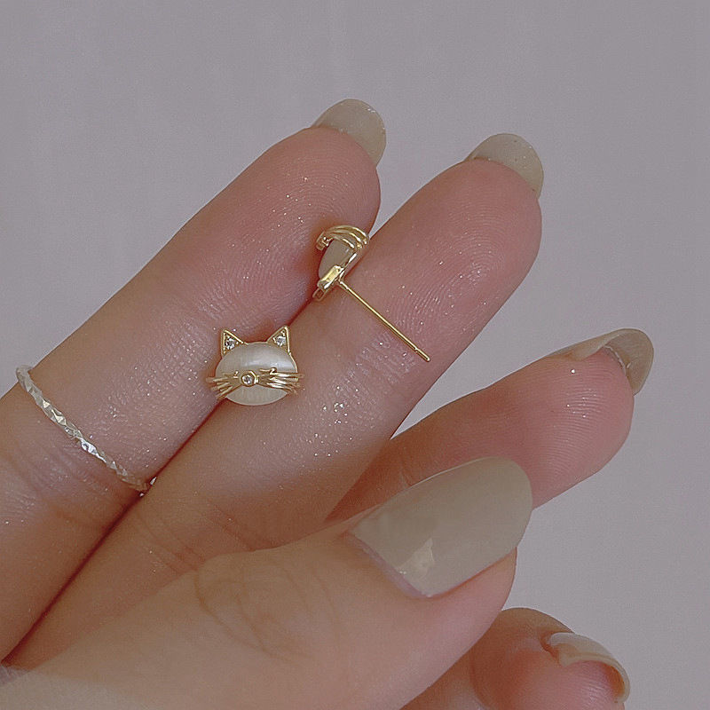 人気 ピアス 可愛い猫猫猫目石シルバーピンピアス女2025年新作ピアス小人数独特のデザイン感イヤリング イヤリング