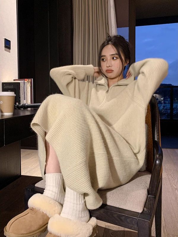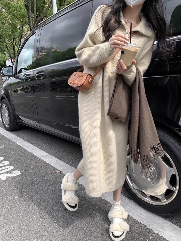 冬のワンピース ロングスカート 韓国ファッション レディース 長袖 ニットワンピース 秋冬 ゆとりがある ロング丈のインナースカート その他 ワンピース ドレス