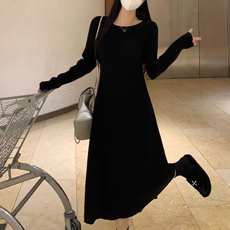 ワンピース ロングスカート 簡単な ニットロングスカート 秋冬 やせて見える ミディアム 長袖 ダウンコート 韓国ファッション レディース その他 ワンピース ドレス