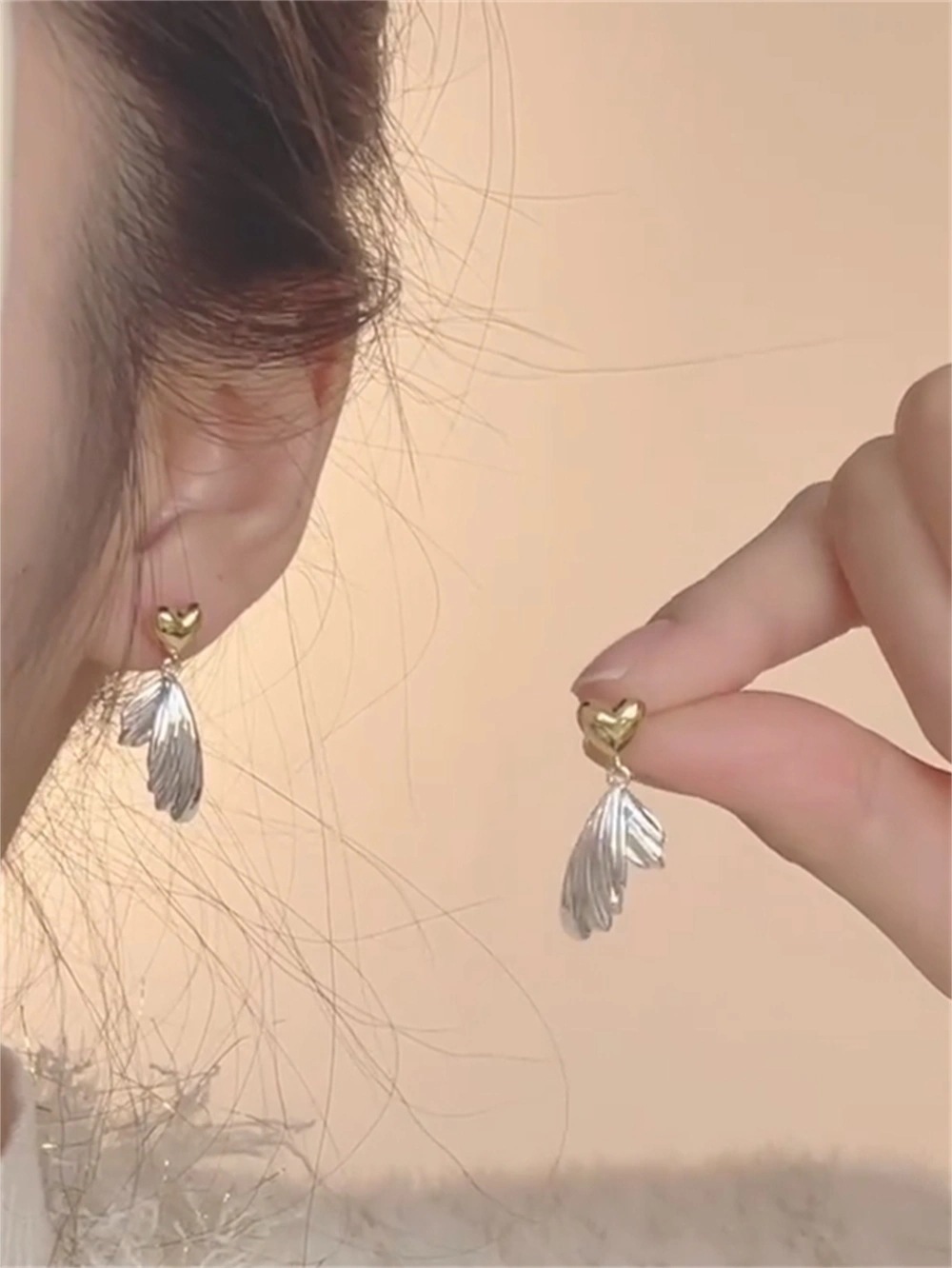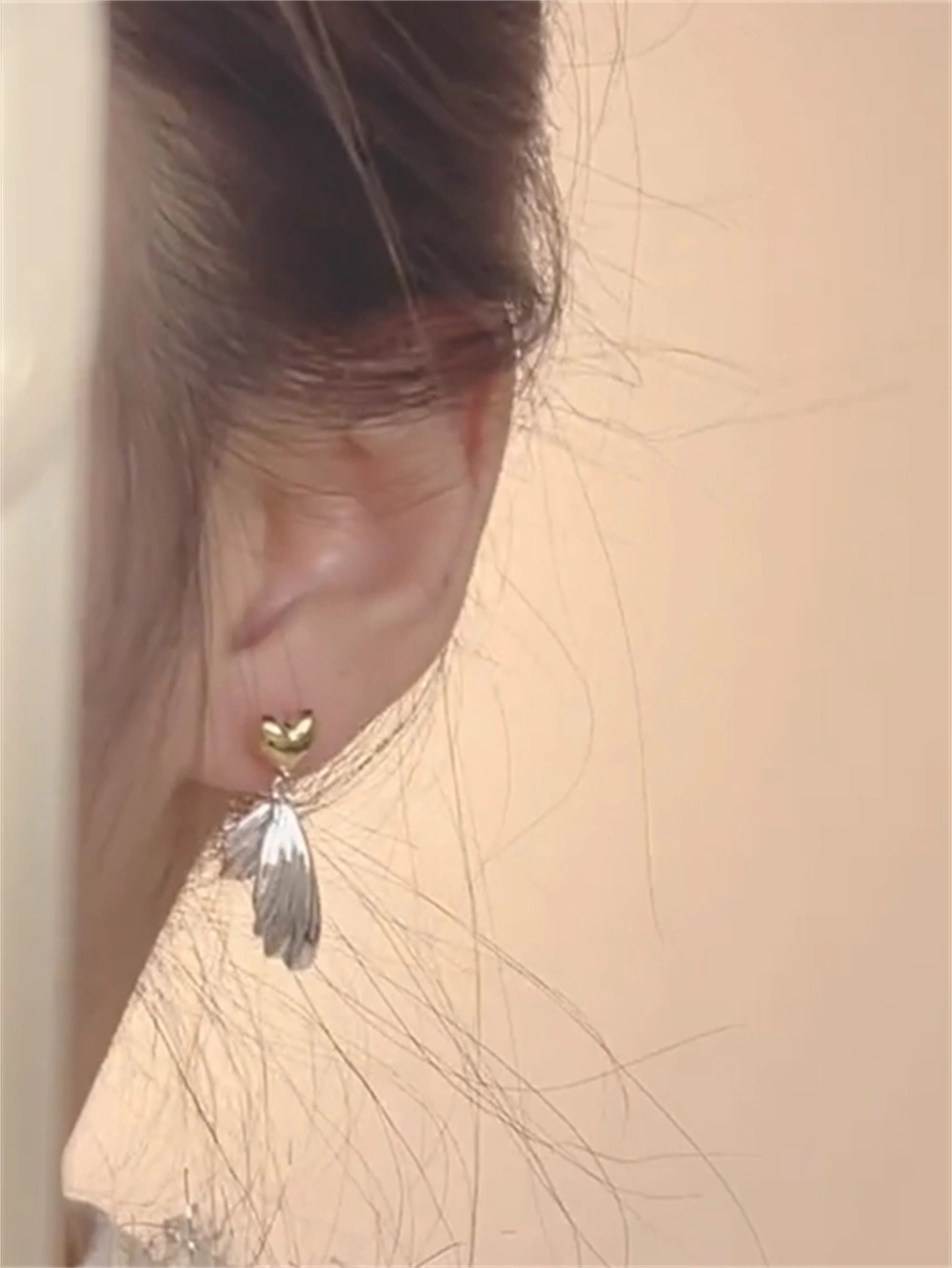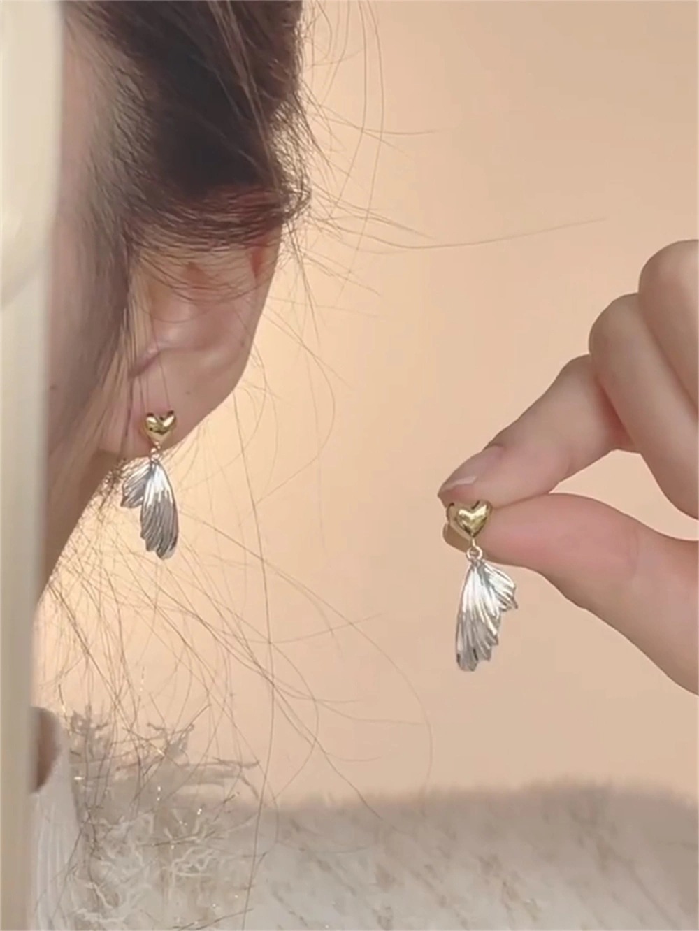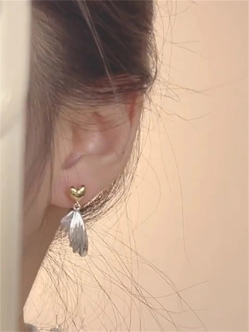 人気 ピアス 925銀針金銀衝突色ハート魚尾ピアス女性小人数設計レトロ気質ピアス高級ピアス イヤリング