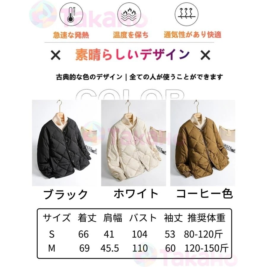 冬アウターダウンジャケット インナーダウン レディース トップス アウター ダウン ジャケット ライトダウン 中綿 暖かい 軽量 コートイン 55%ホワイトダックダウン 長袖