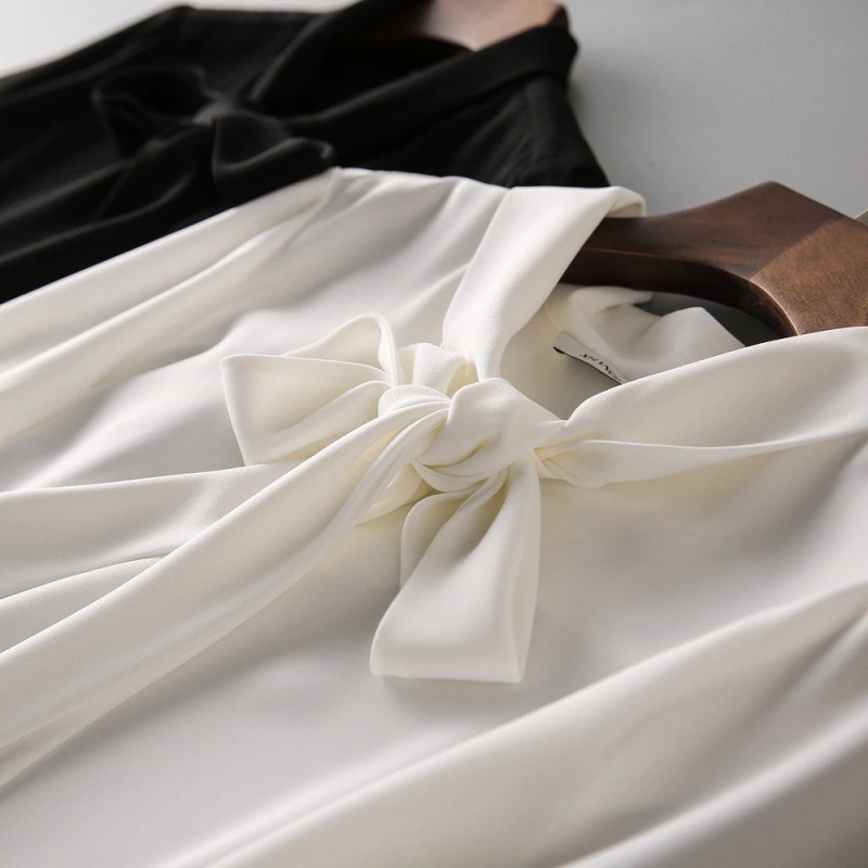 シアースリーブ ドッキングシャツ ボウタイシャツブラウス
