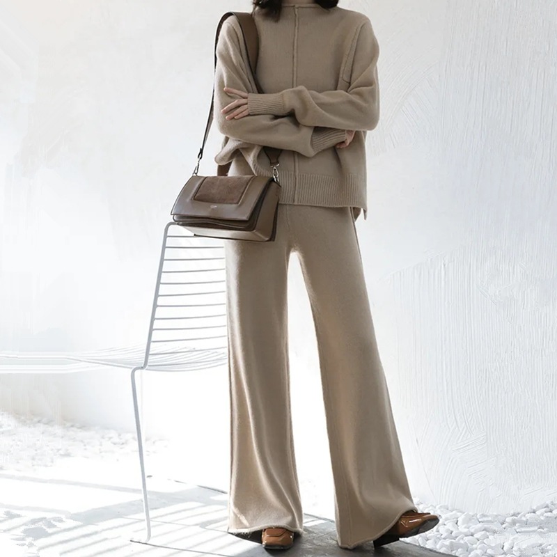 ニット セット 気質 アップ セーター ワイドパンツ 2点セット レディース 秋冬 ニットセーター 韓国 ラウンドネック 長袖 ドロップショルダー 上下セットズボン タイト ミモレ丈 ワイドパンツ 福
