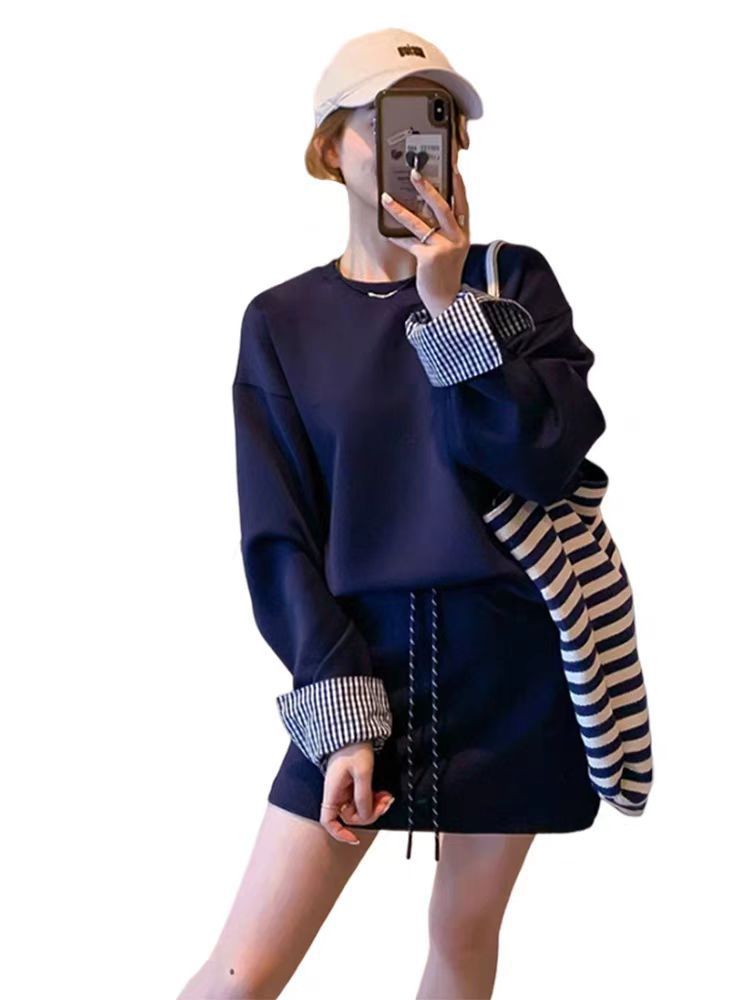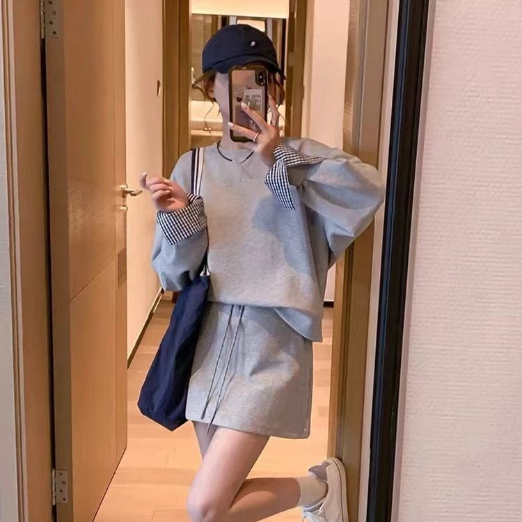 春秋 セットアップ 運動 長袖スウェット スカート ワイドパンツ 切り替え フェイクレイヤード 韓国ファッション 柔らかい お肌に優しい 大きいサイズ ゆったり カジュアル レディース