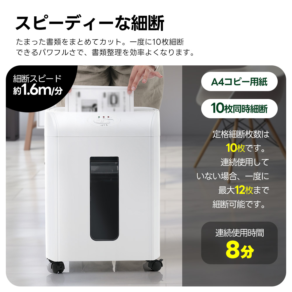 シュレッダー 18L 家庭用 業務用 電動 コンパクト 静音 家用 A410枚同時切断 CD カード対応 マイクロカット シュレッダー機 書類整理 個人情報 超静音 8分連続使用 White ABS