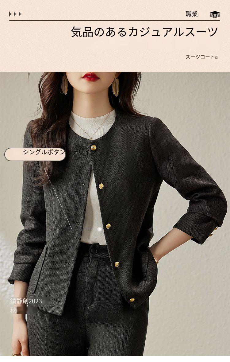 パンツスーツ ツイード レディース セットアップ ジャケット ツイードジャケット リクルートスーツ ノーカラー 長袖 秋 冬 フォーマルスーツ 体型カバー 厚手 ブラックフォーマル ママスーツ