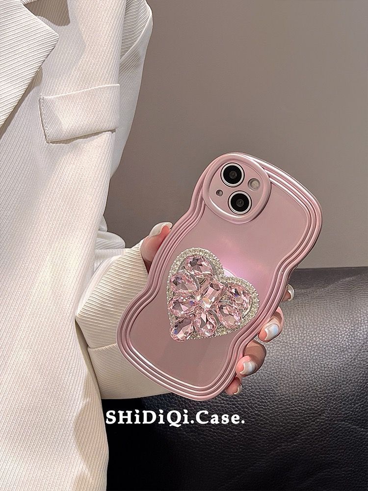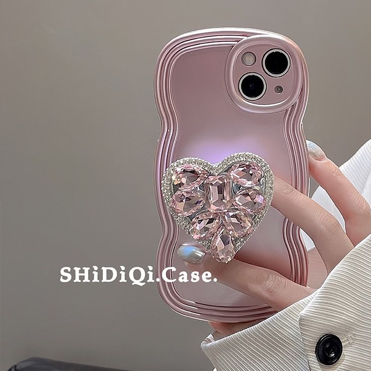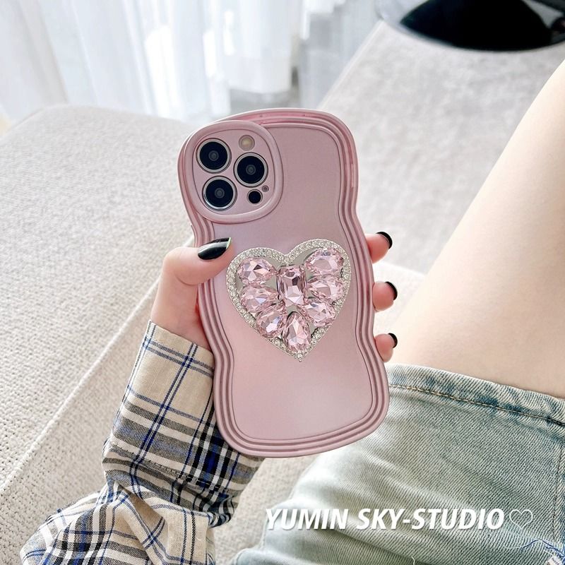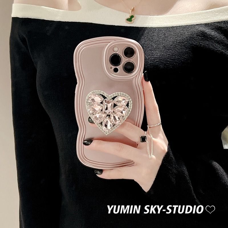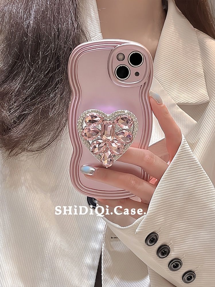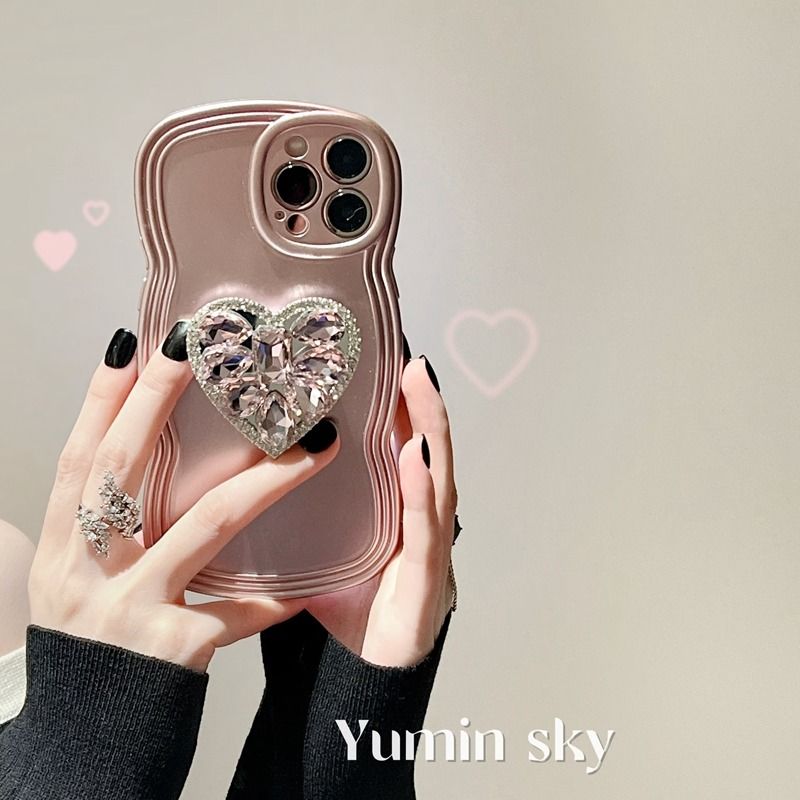 ラインストーンハート iPhone14promax アップル13 12ケース スマホカバー ブラケット付きX XS iPhone 14