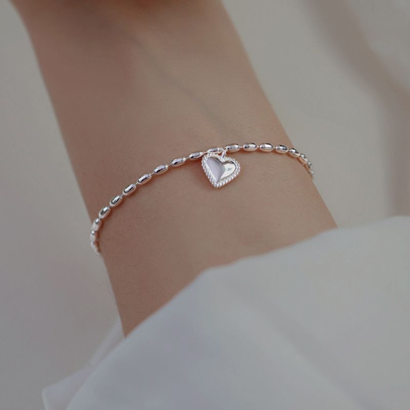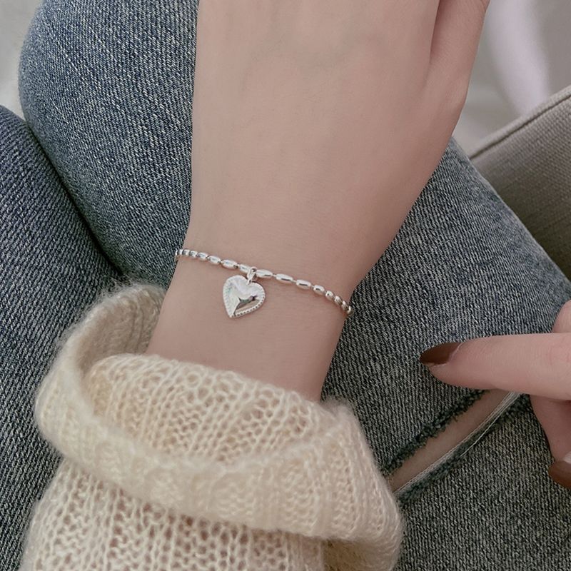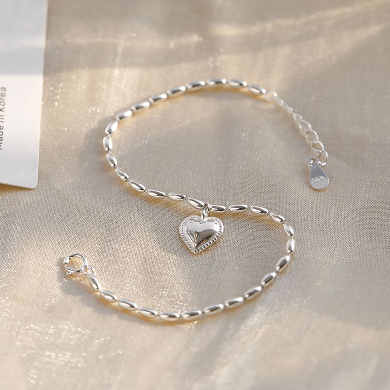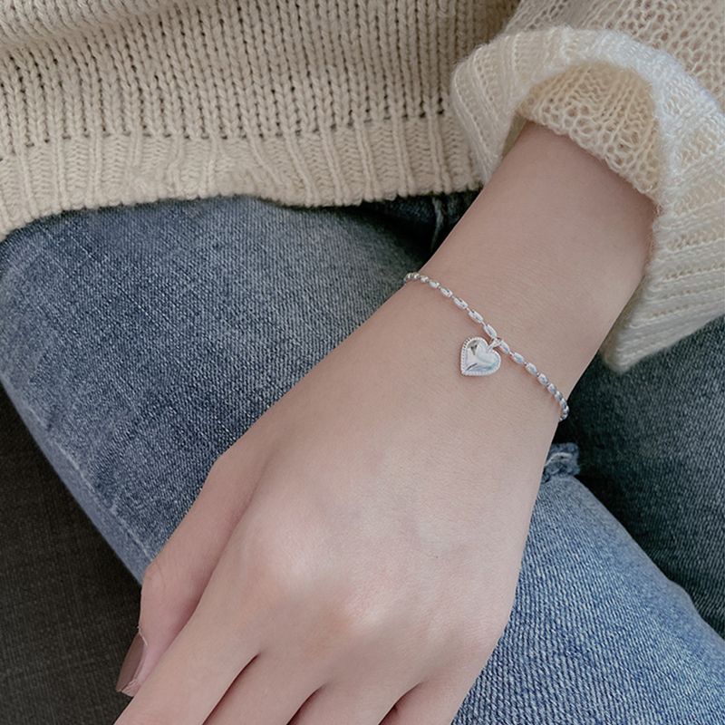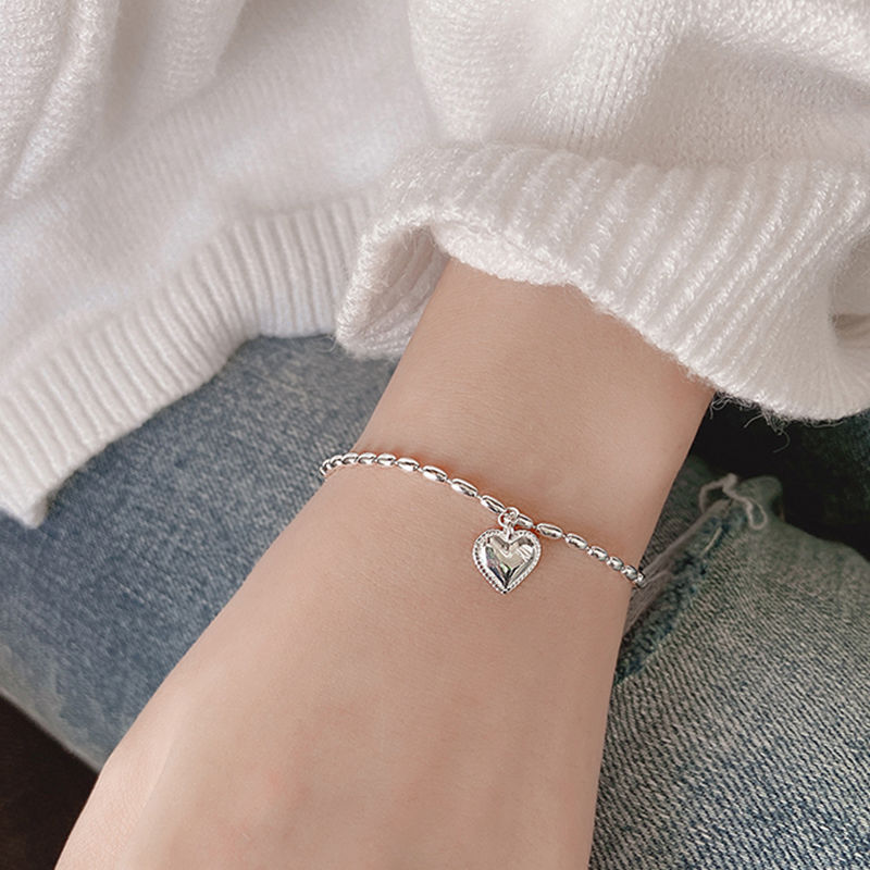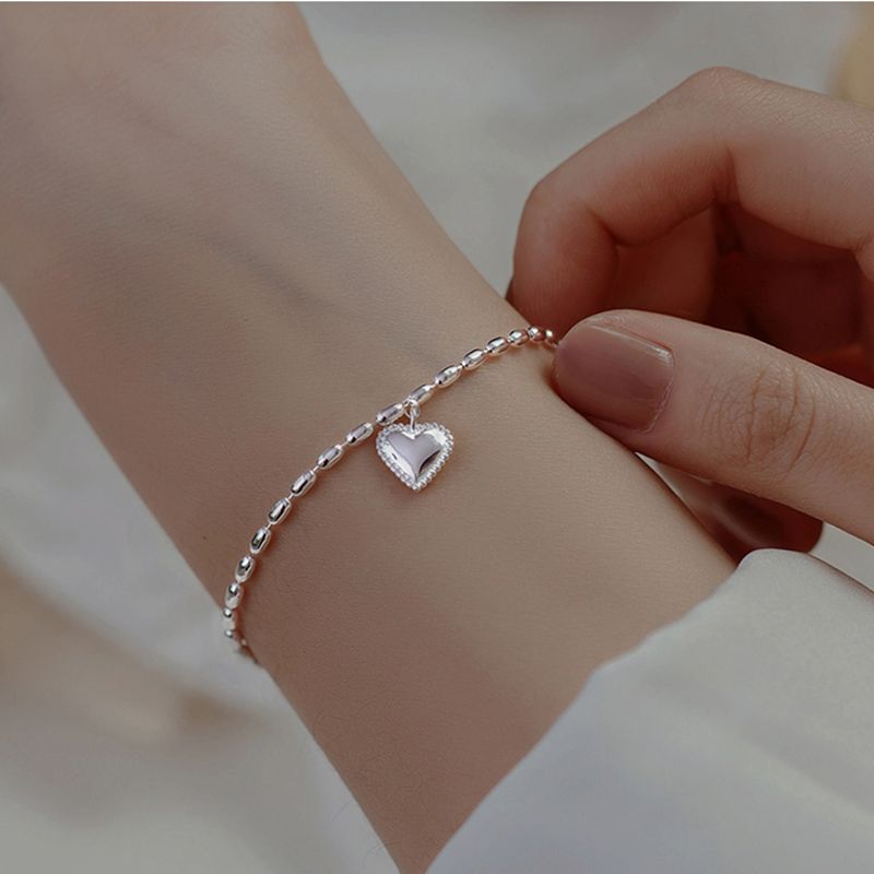 春夏 アクセサリー シルバー ブレスレット 着痩せ 韓国シンプル チェーン ハートデザイン 親友 バングル ブレスレット