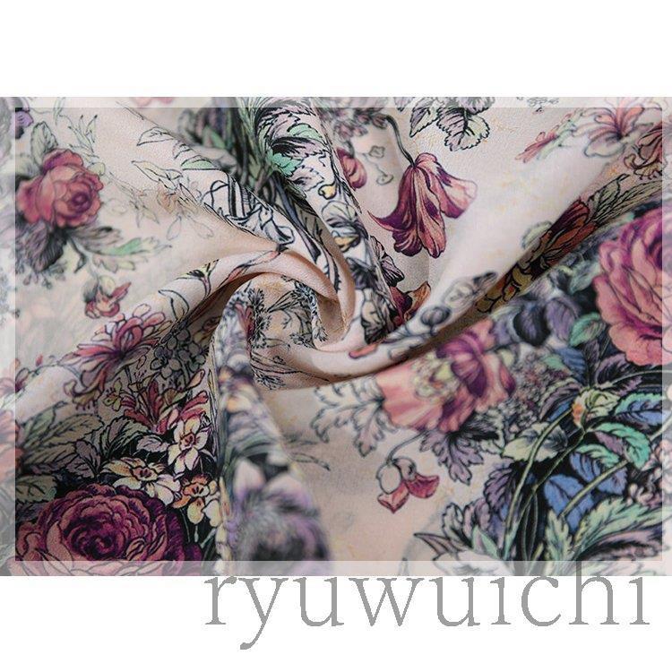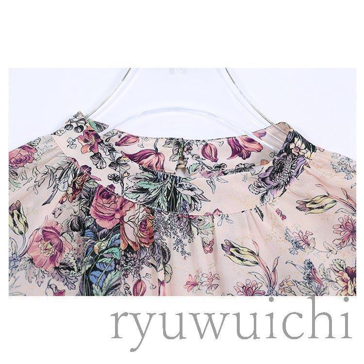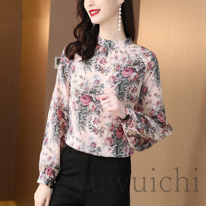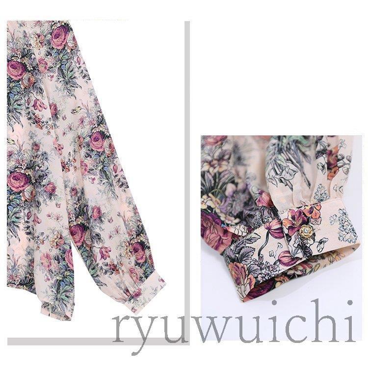 ブラウス シャツ トップス 長袖 柄 総柄 花柄 スタンドカラー 爽やか ふんわり 大人フェミニン 高見え ボタン ホワイト レッド 清楚 可愛い