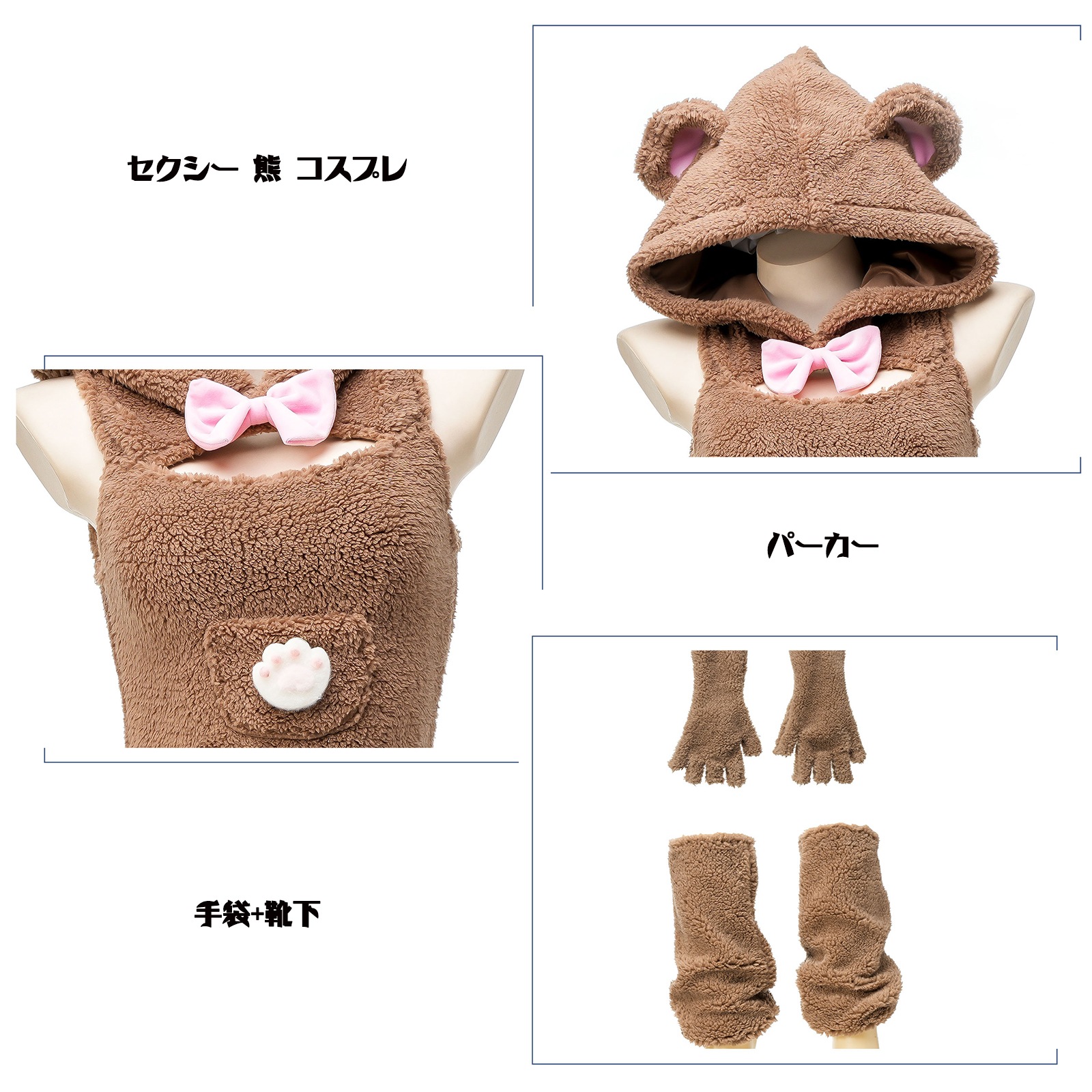 【即納】 SENMHS セクシー コスプレ 熊 エロ エッチ な 調教 誘惑 過激 萌え萌え 熊耳 ベビードール ランジェリー 下着 仮装 可愛い アニマル コスチューム 仮装 ワンサイズ レディース ドレス 手袋 靴下3点セット