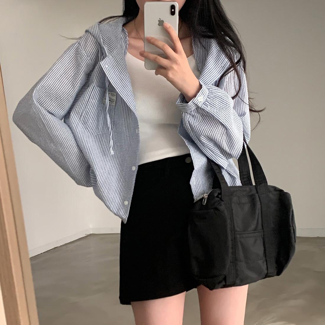 2025新作韓国ファッションシャツ 春 uvカット カーディガン uv ブラウス 長袖 ストライプ シフォン トップス きれいめ シンプル シャツ ブラウス