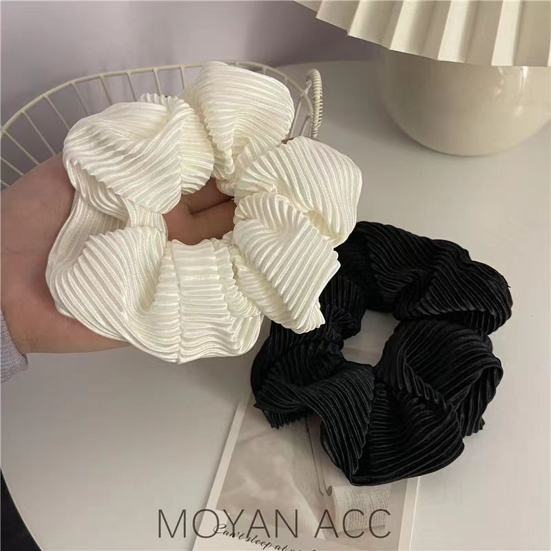 シルキー超仙クリーム光沢大判肥えた腸のシュシュ純色優しいフレンチレトロな皺のロマンチックな髪飾り女 ヘアゴム シュシュ