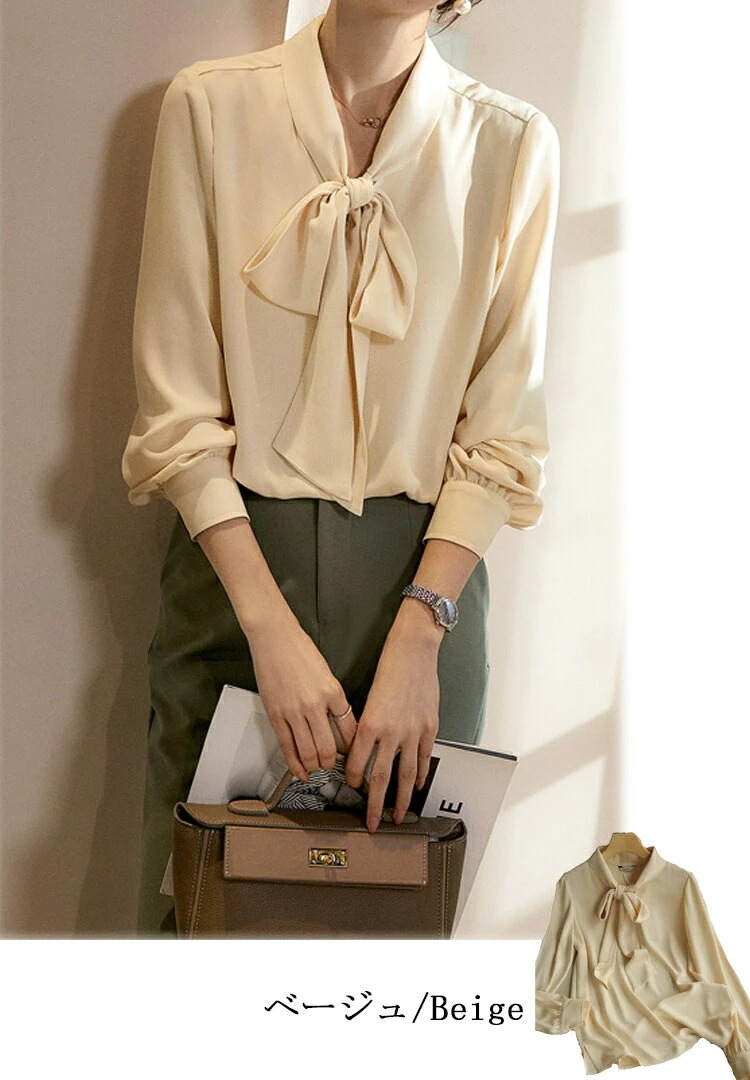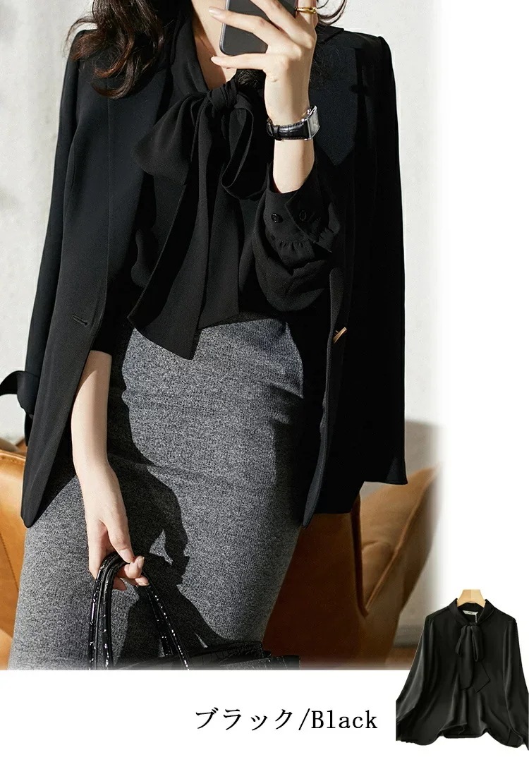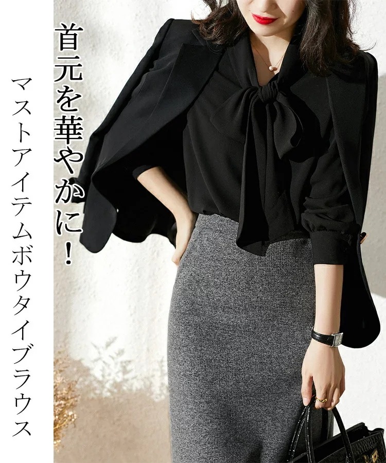 ボウタイブラウス長袖オフィスレディースリボンタイシャツブラウスフォーマルスーツインナートップスボウタイブラウスシャツ白折襟黒春長袖ブラウスギャザー落ち感フォーマルブラウス春ゆったりOL通勤卒業式入学式