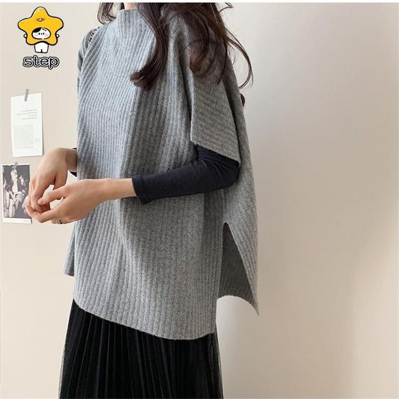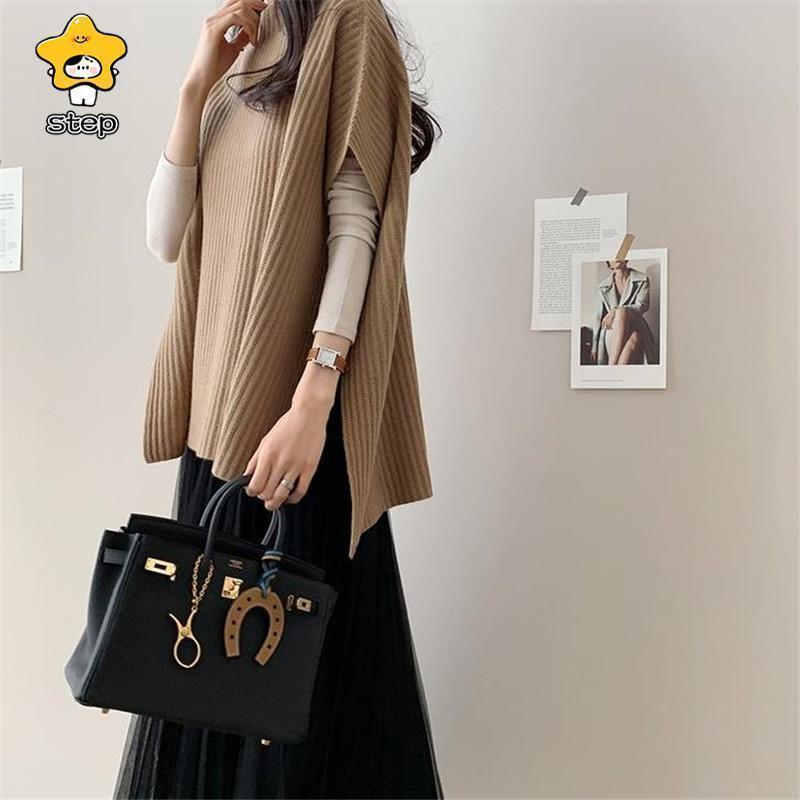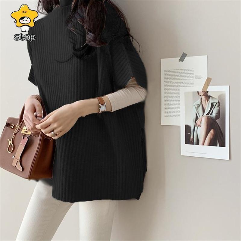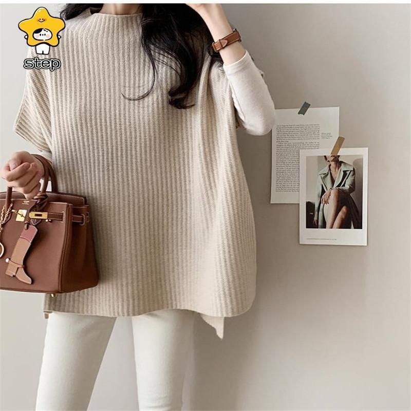 CHUNKY 卒業式 母 ベスト ニットベスト レディース ポンチョ ローゲージニット チャンキー ゆったり プルオーバー ジレー セーター 秋物 レイヤード フレンチスリーブ