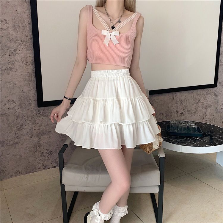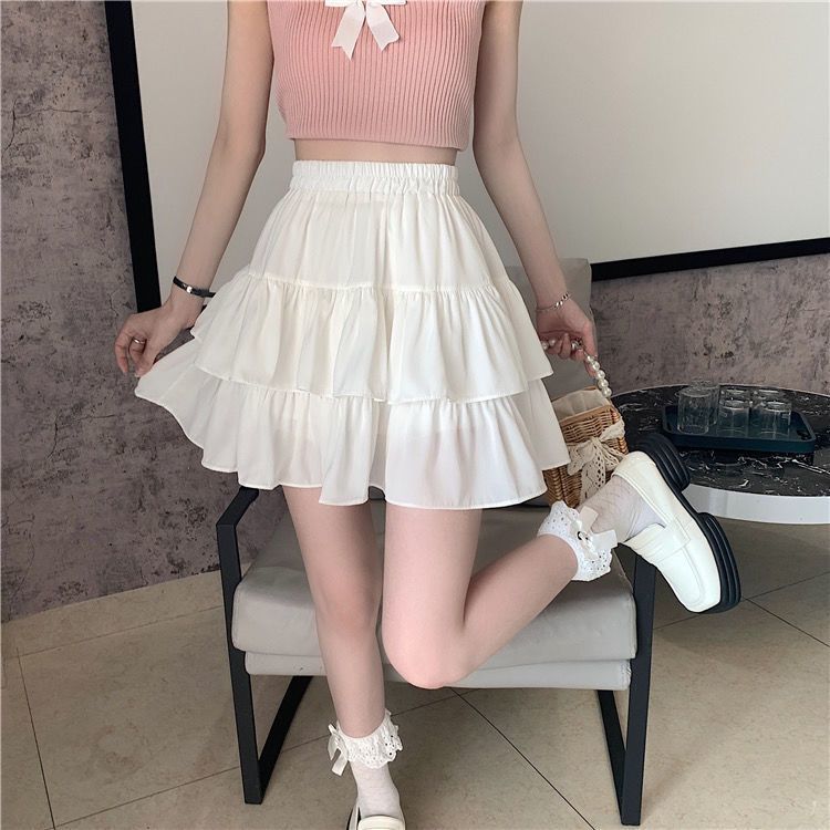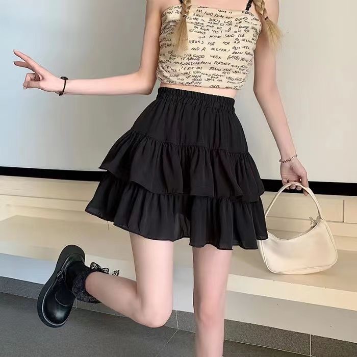 プリンセス風ダブルレイヤーハイウエストケーキスカート 2024春秋新作ショートスカート スリム半身スカート アンチグレアショートスカート ミディアムスカート