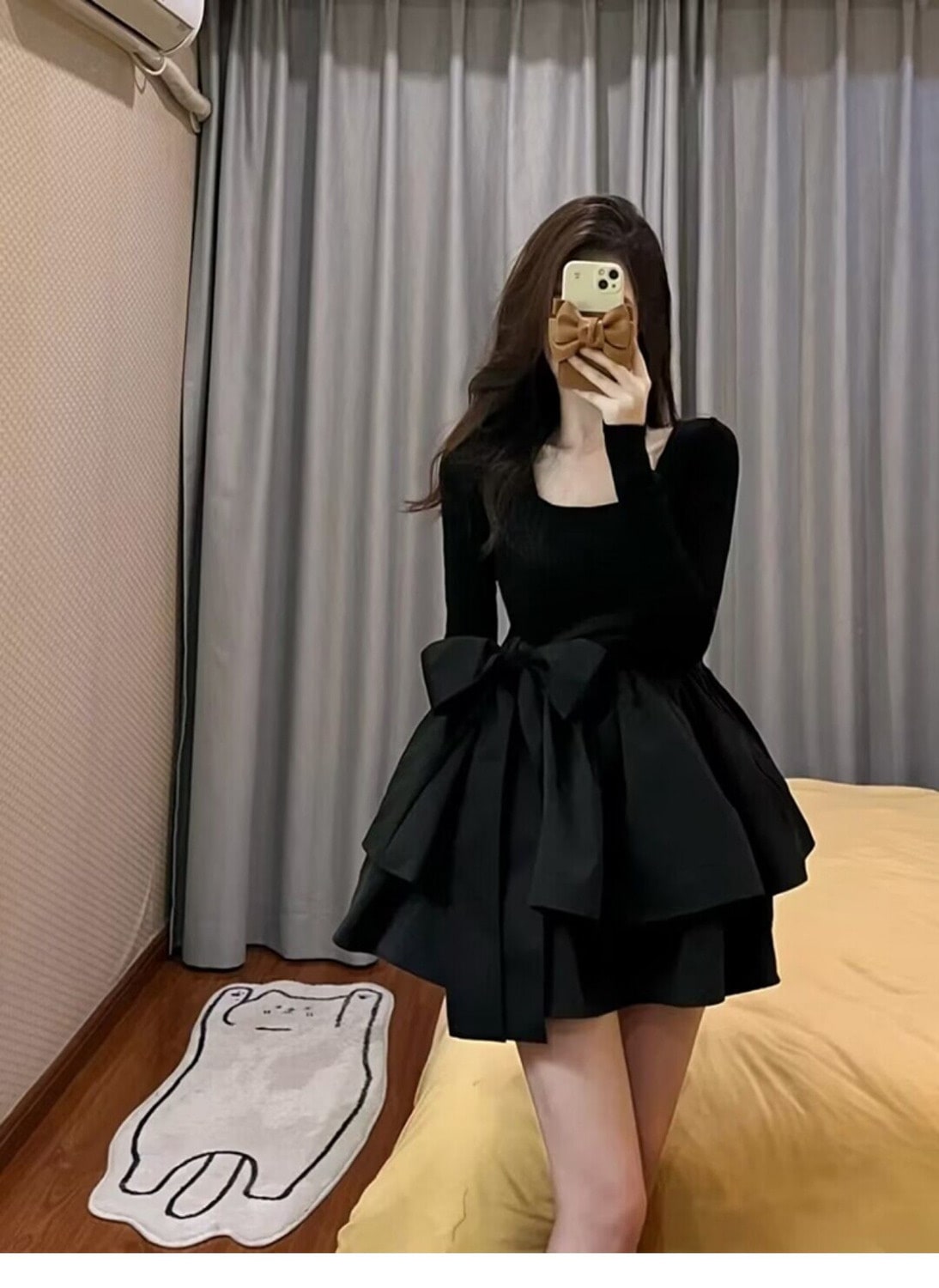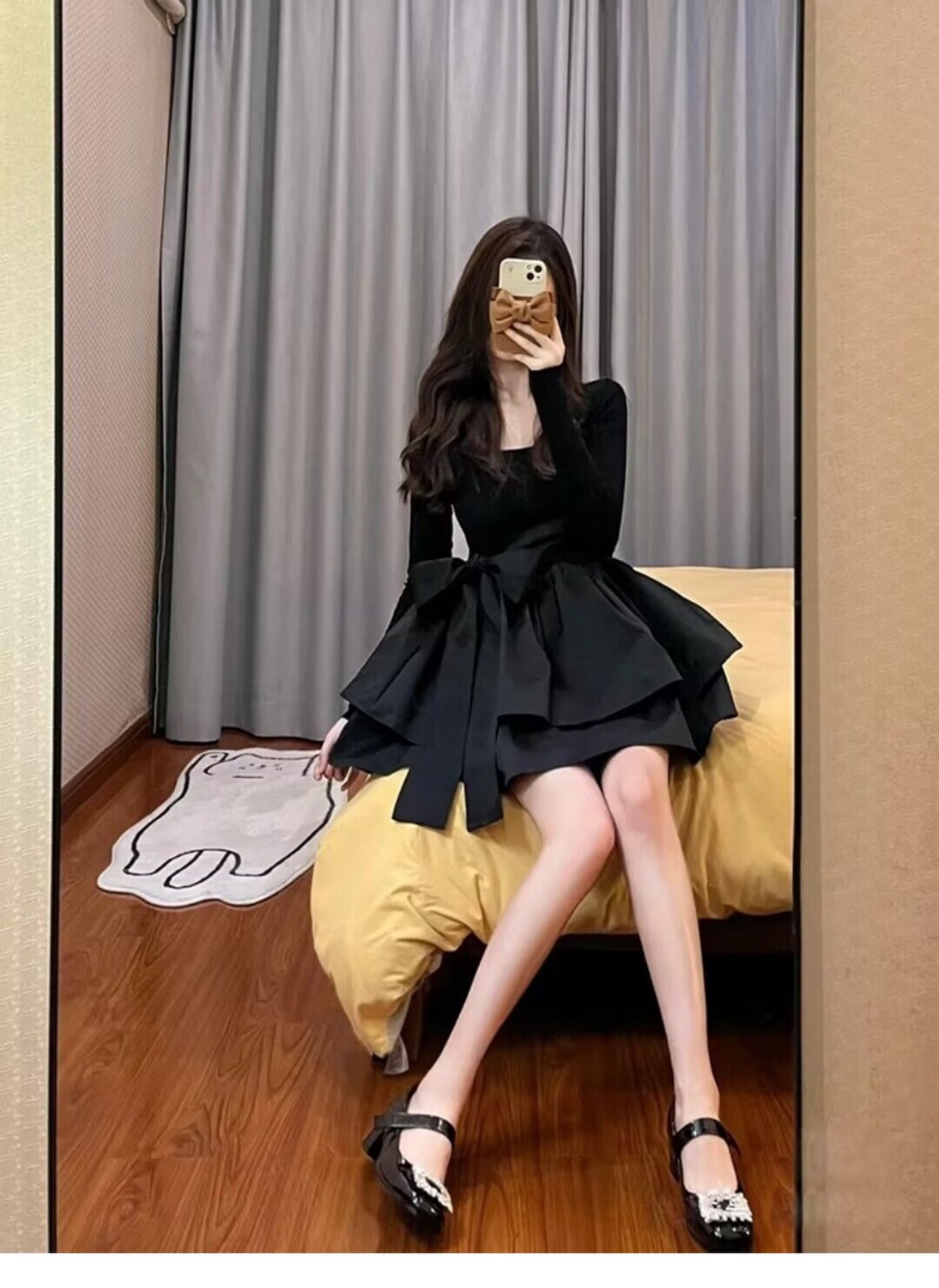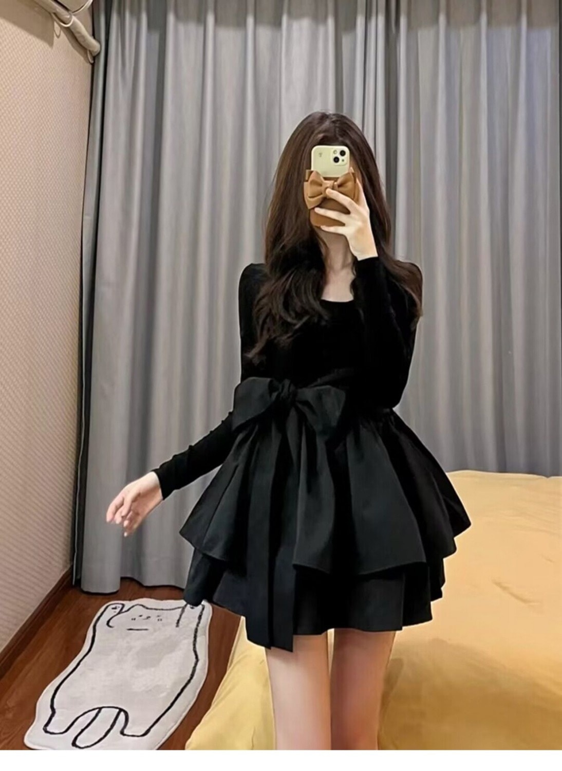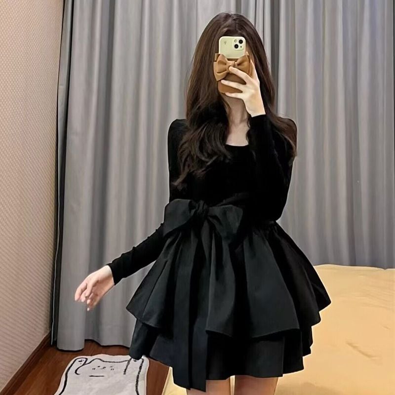 コスプレ ハロウィン 大人気ロリスーツドレス パーティードレス着痩せバンドリボン黒ポンポンワンピース春 新作小柄に 百掛け長袖ケーキスカートコスプレドレス メイド服 メガ割