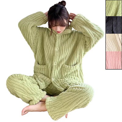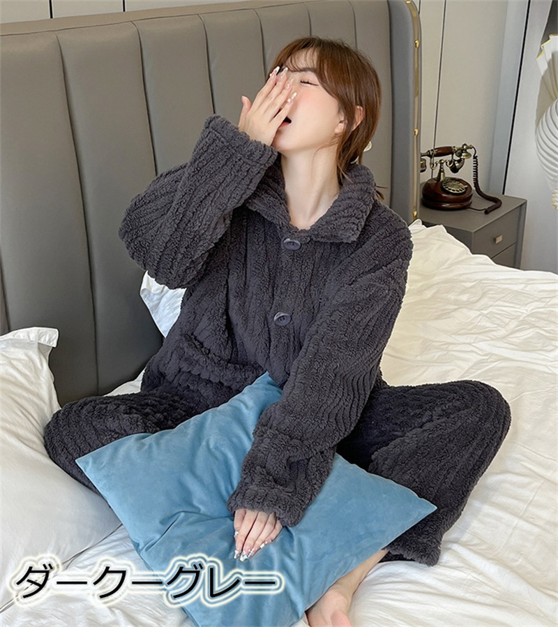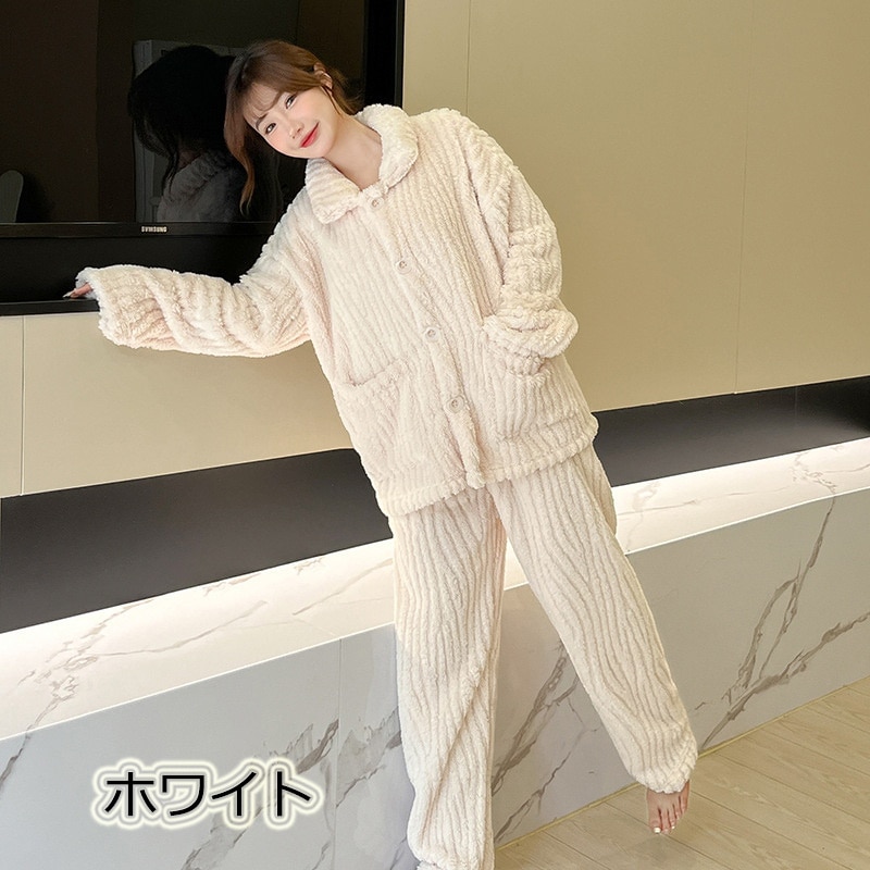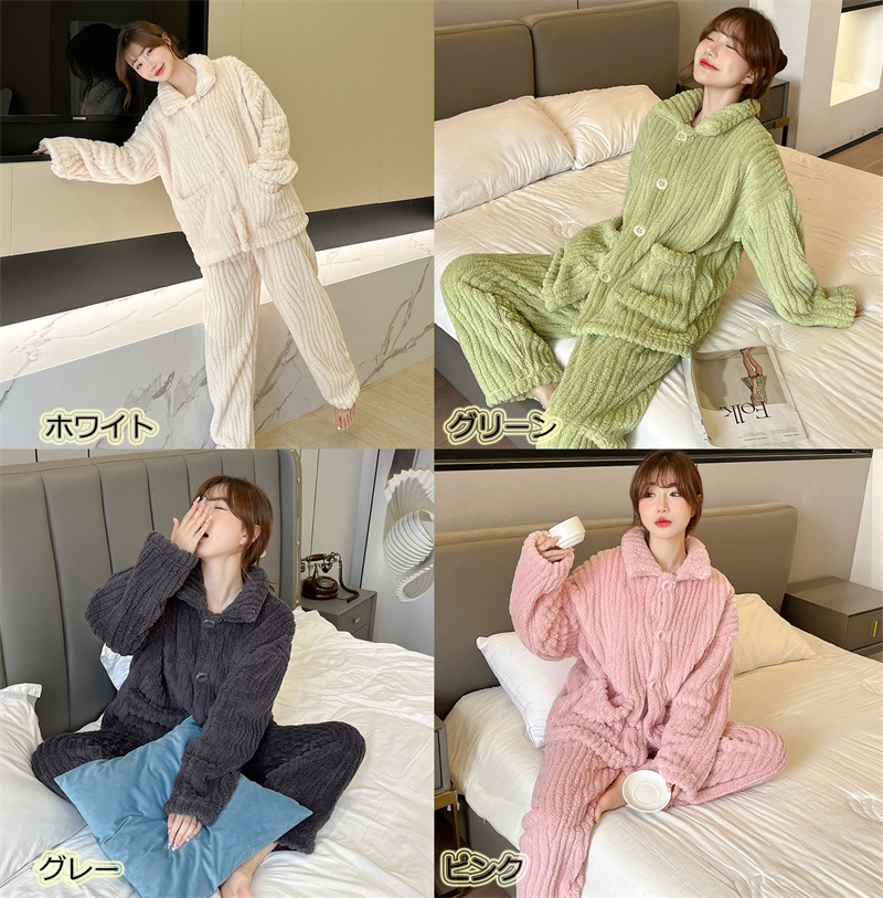 ルームウエア レディース パジャマ もこもこ 上下セット 前開き 秋冬ルームウェア 部屋着 長袖 プレゼント ふわふわ 寝間着 暖かい 2タイプ