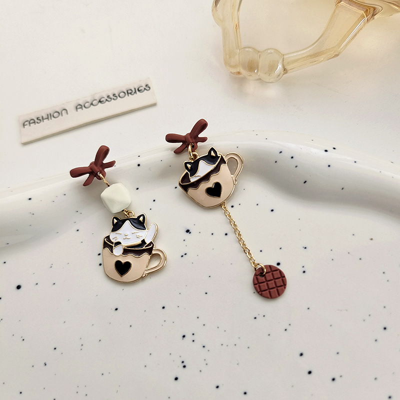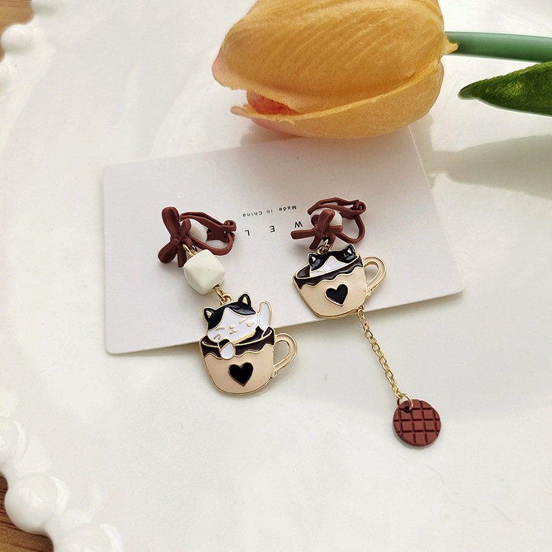 冬のピアス ティーカップキティピアス ロングアシンメトリータッセルピアス ピアス