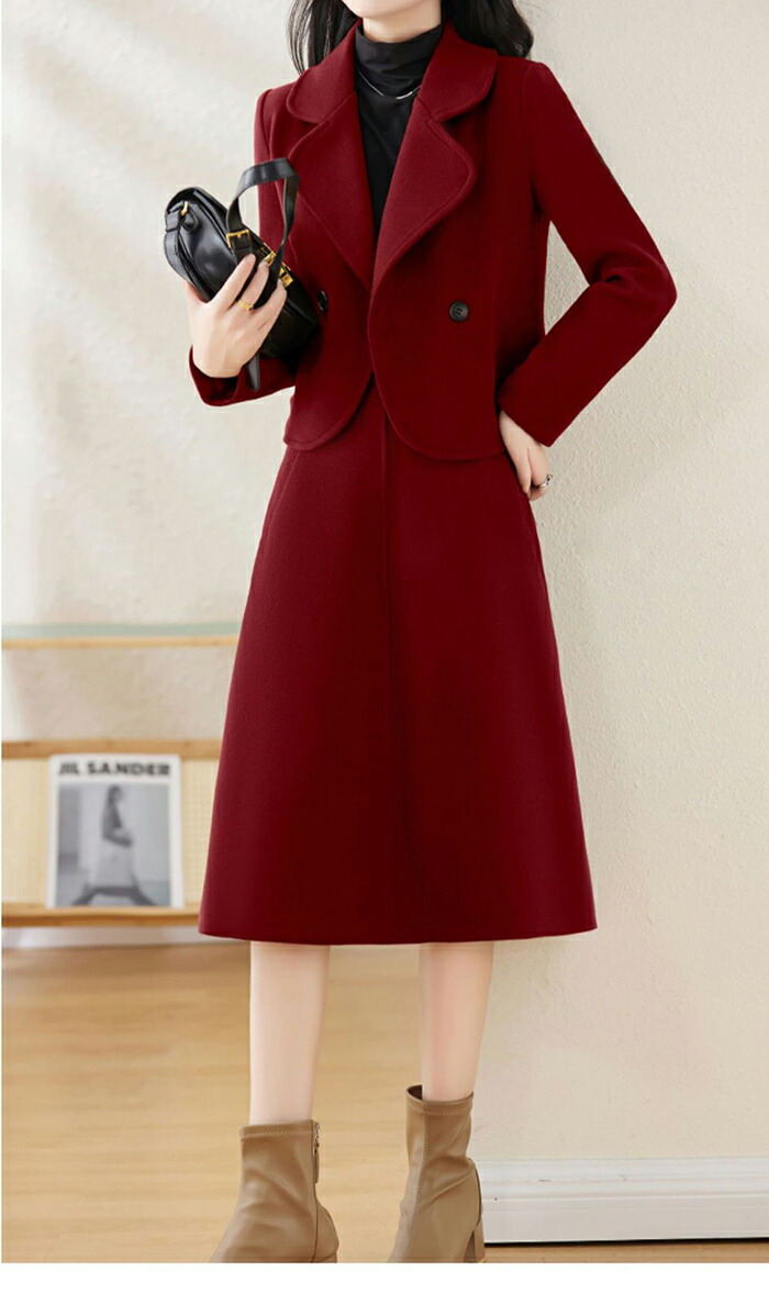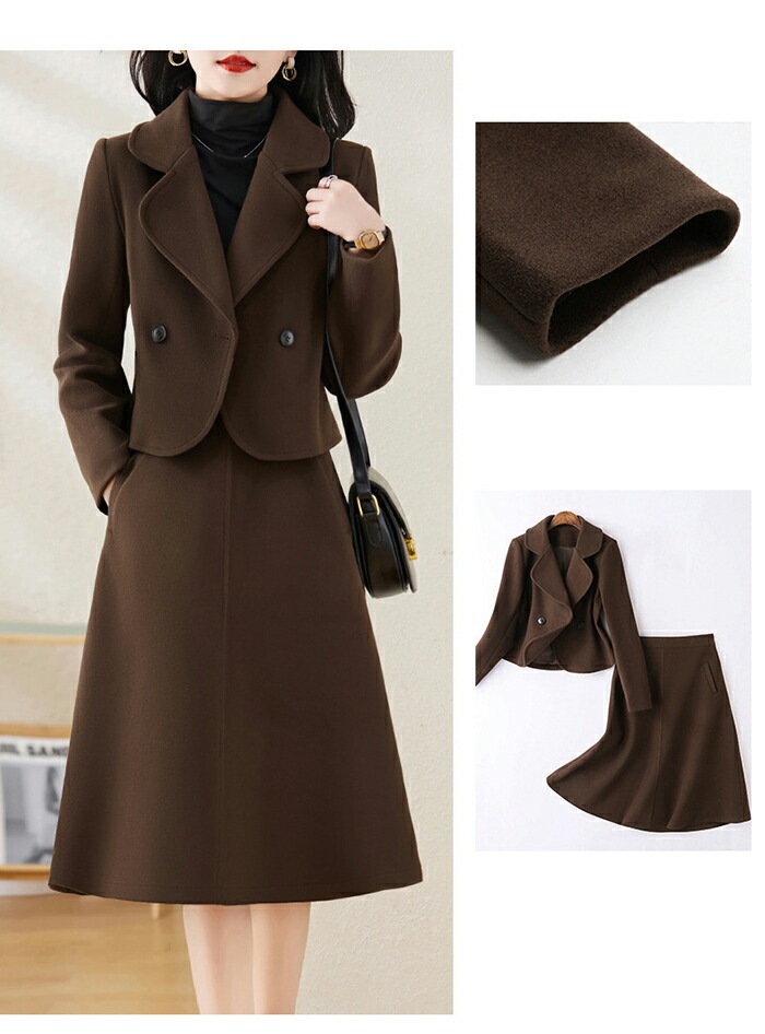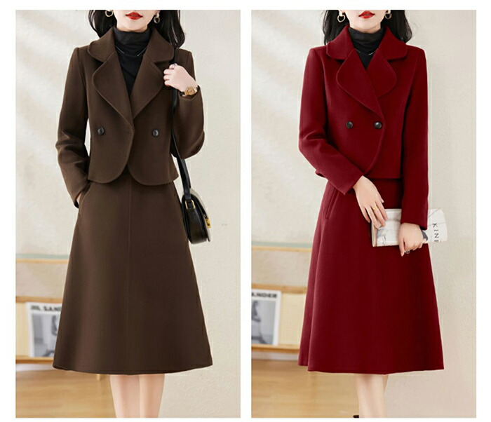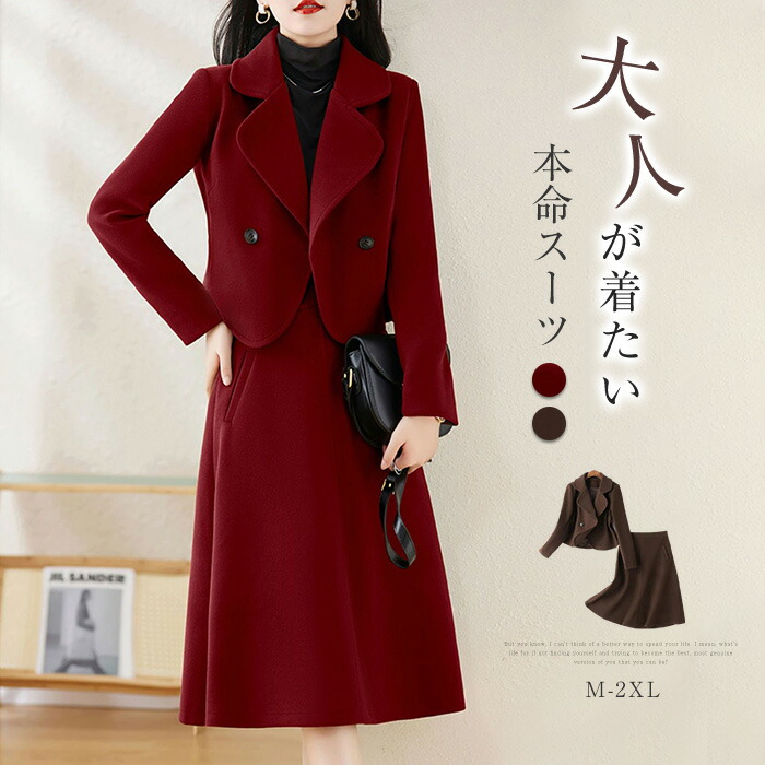 セットアップ スーツ レディース 秋冬 厚手 コート スカート ストレッチ 長袖 スカートスーツ ビジネス 2点セット大きいサイズ セット ロング 通勤 OL きれいめ 春 秋 冬 卒業式 入学式