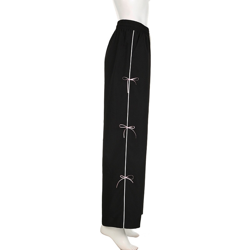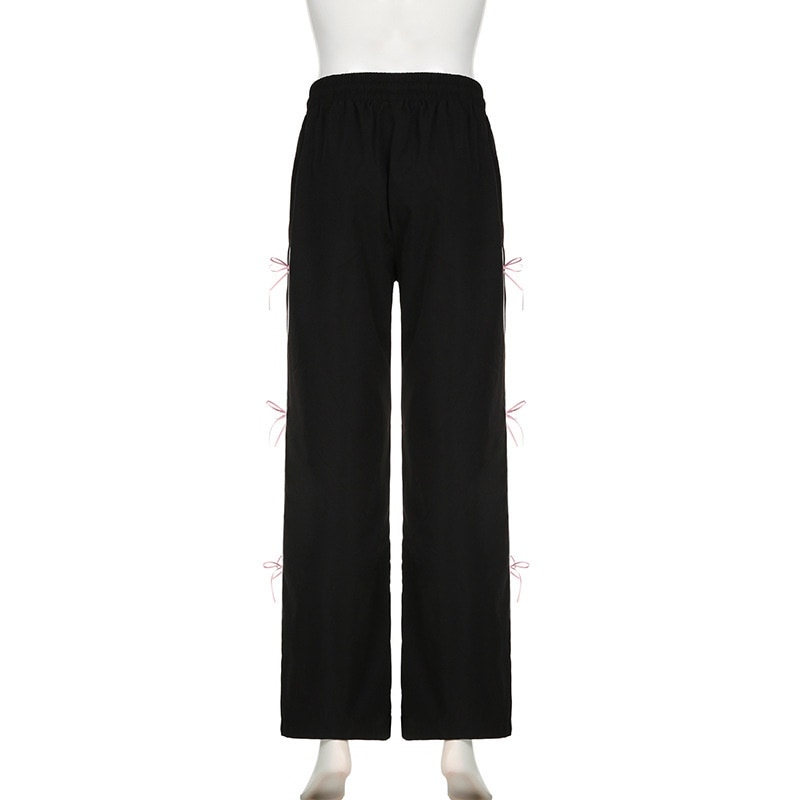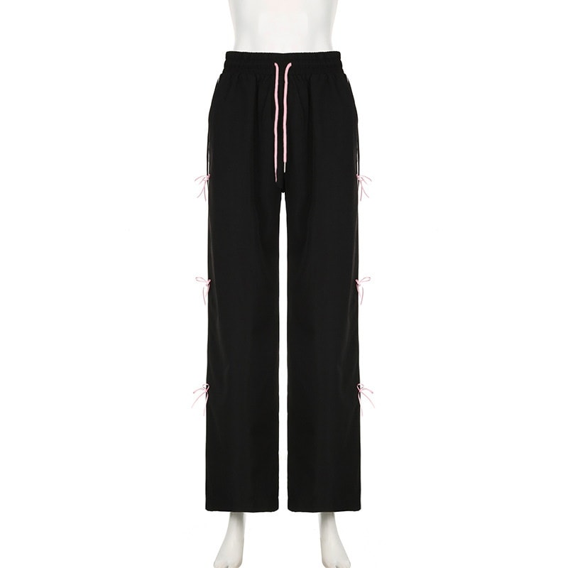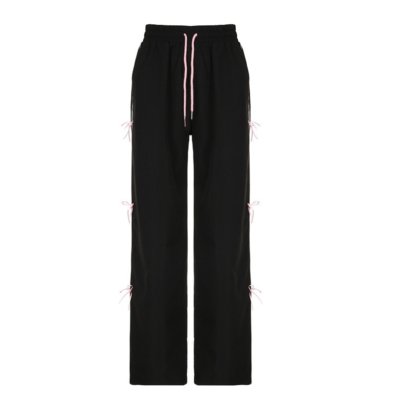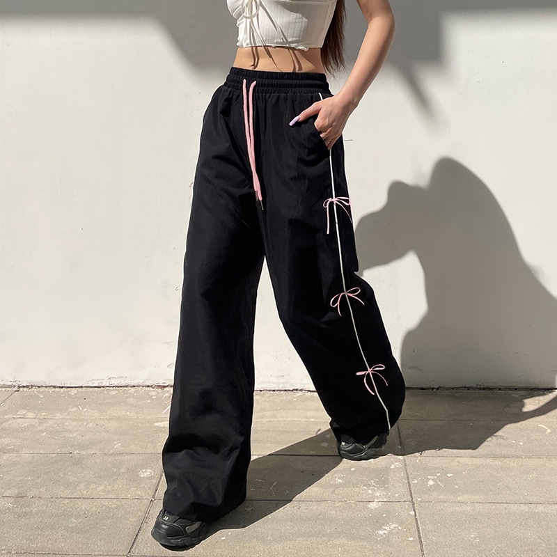 アメリカの街頭の甘辛風カジュアルパンツ女性y 2k個性的な蝶結びは広い脚をつなぎ合わせて痩せている運動長ズボンの潮が見える ロングパンツ