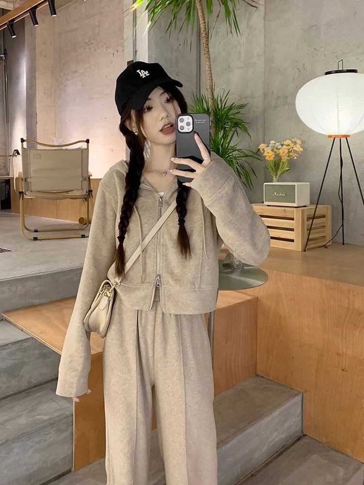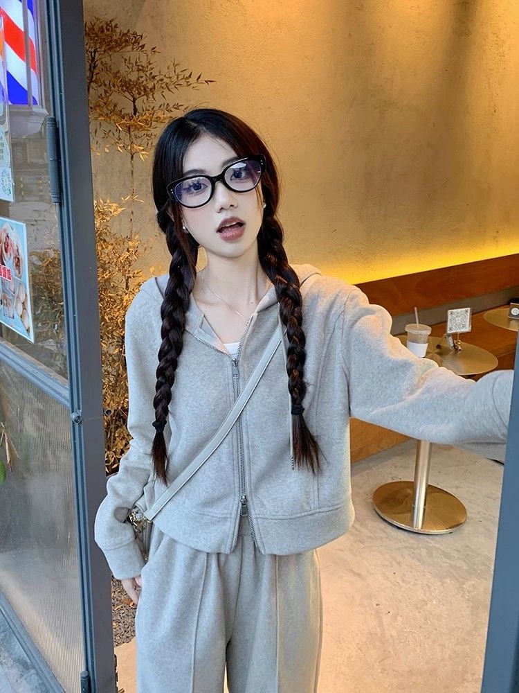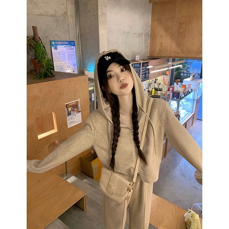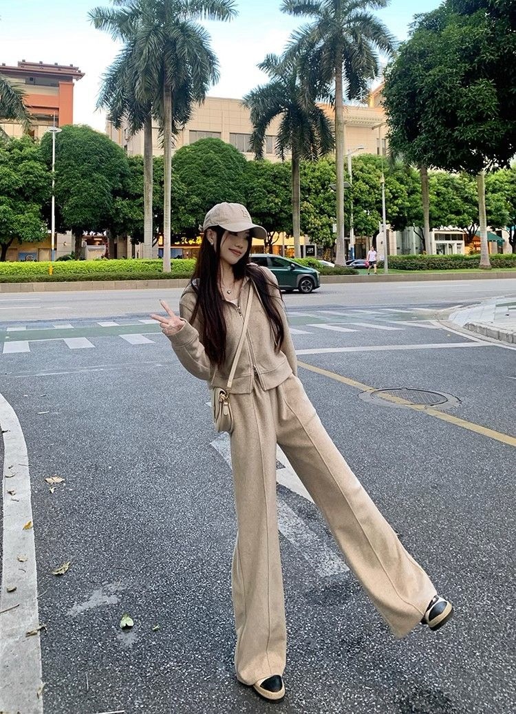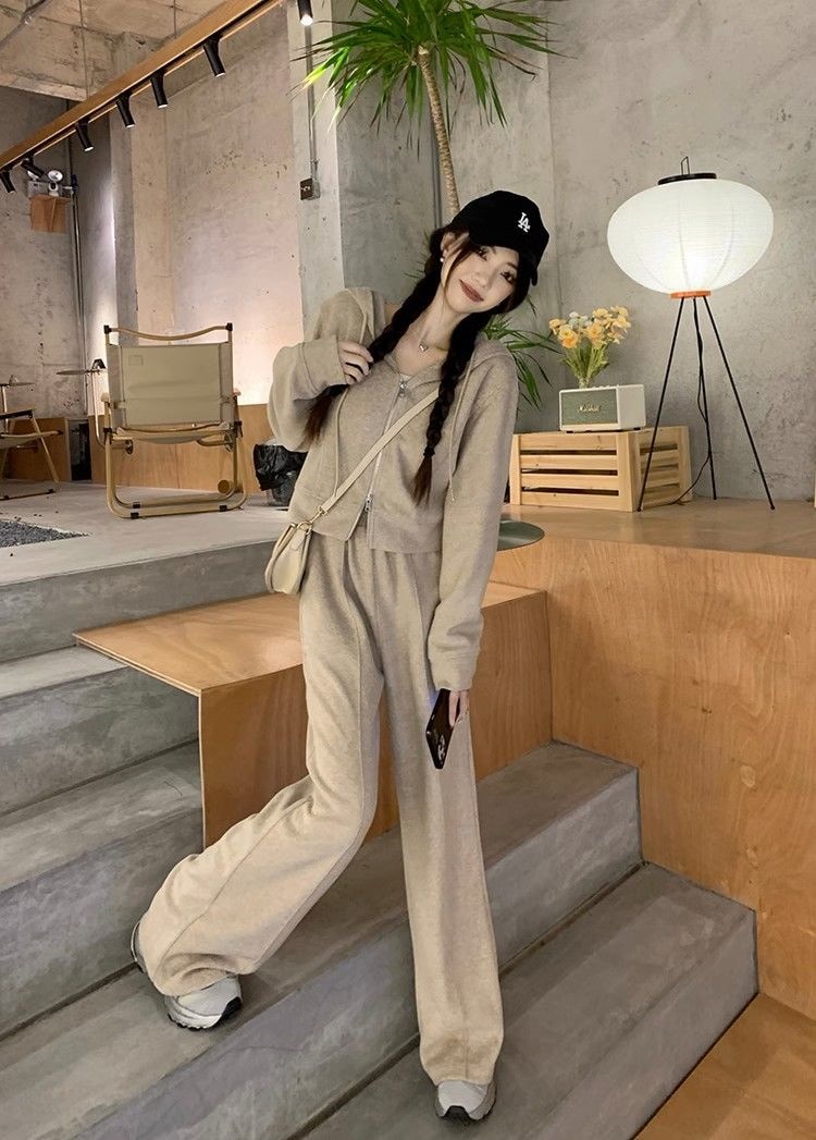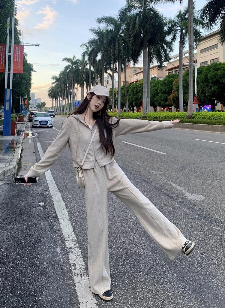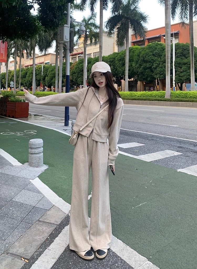 涼しく楽ちんセットアップ 長袖 スウェット韓国ファッション パーカースウェット アウター無地 レディースセットアップ 2点セットスウェット上下セットズボン本