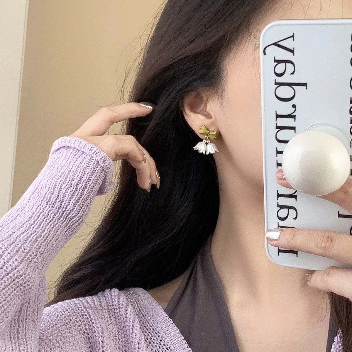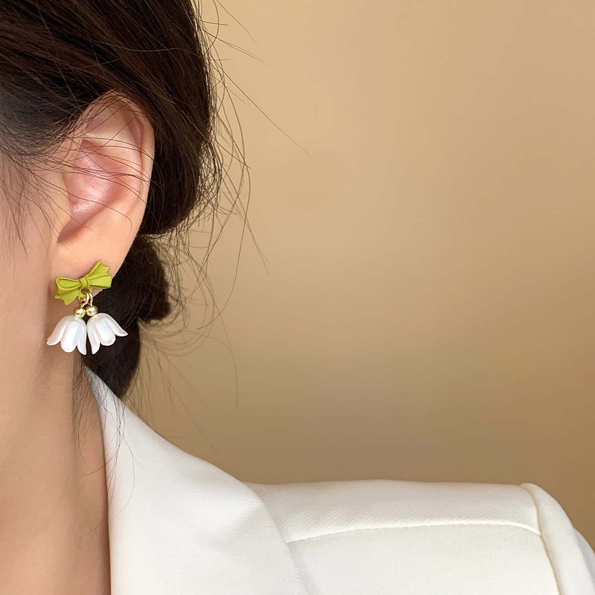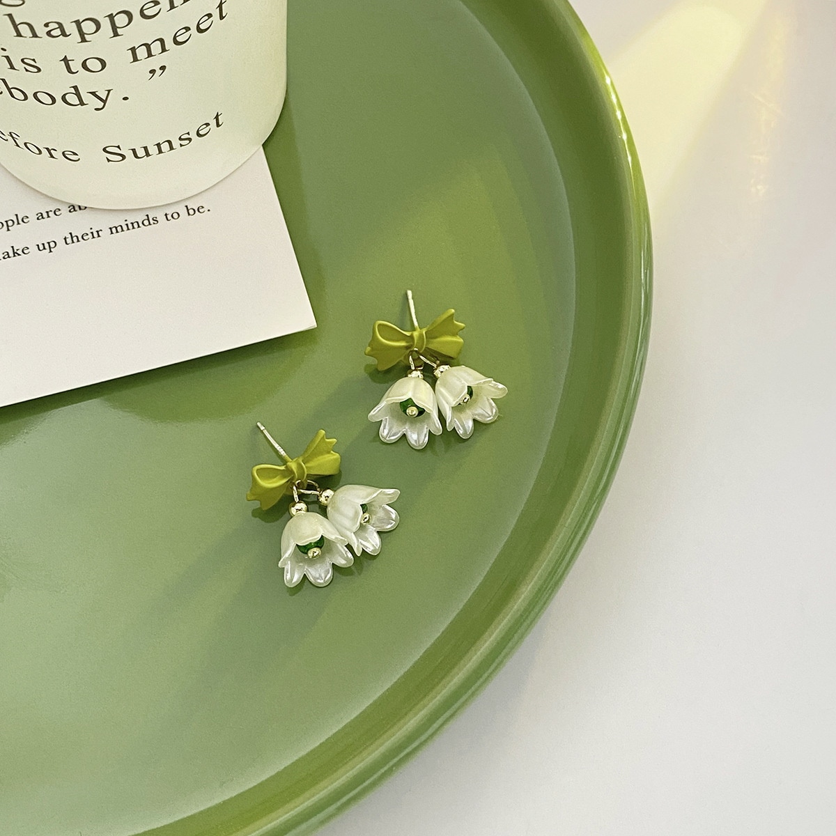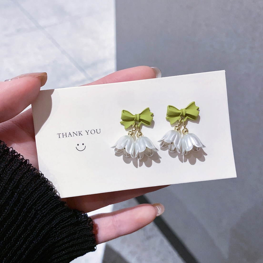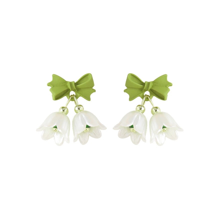 冬のピアスクリスマス S925銀針 チューリップの花 ピアス グリーン 蝶結びヘ イヤリング 耳飾り イヤーカフ イヤリング