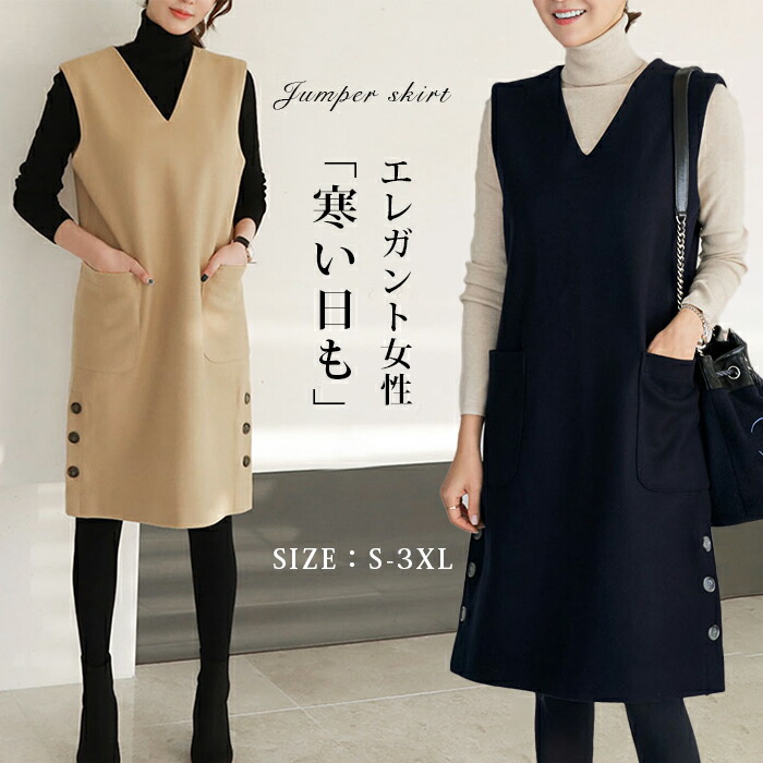 ジャンパースカート ワンピース 秋 レディース ジャンパースカート Vネック ジャンスカ サロペットスカート オールインワン ワンピ ノースリーブ タンクワンピース 重ね着 大人 かわいい きれいめ