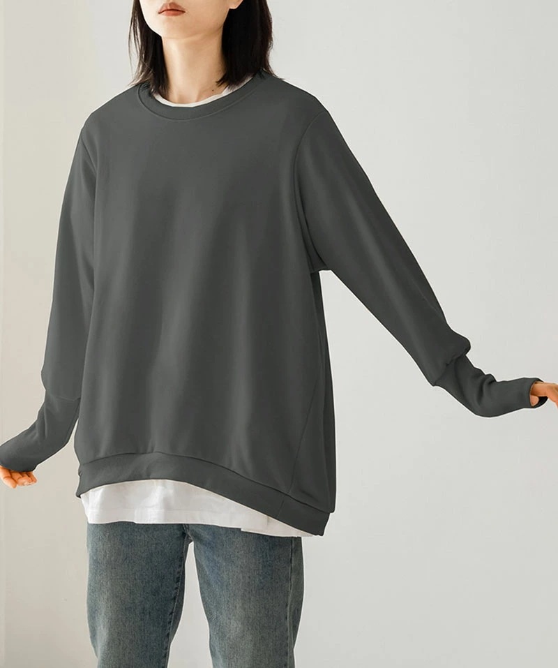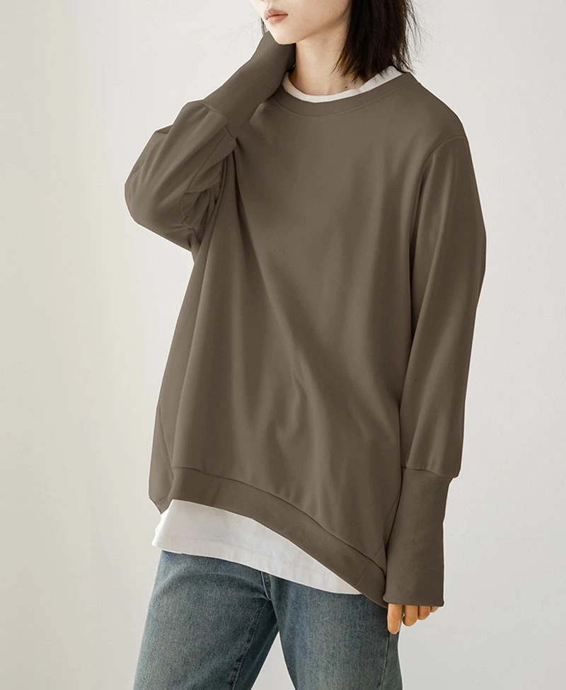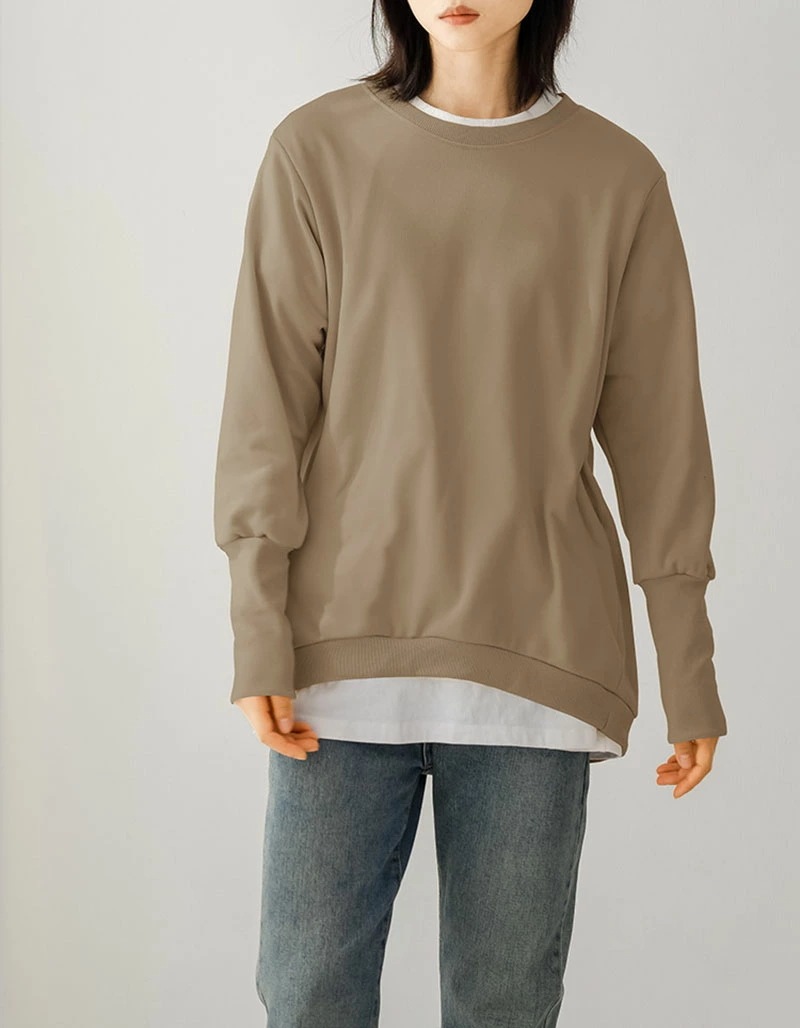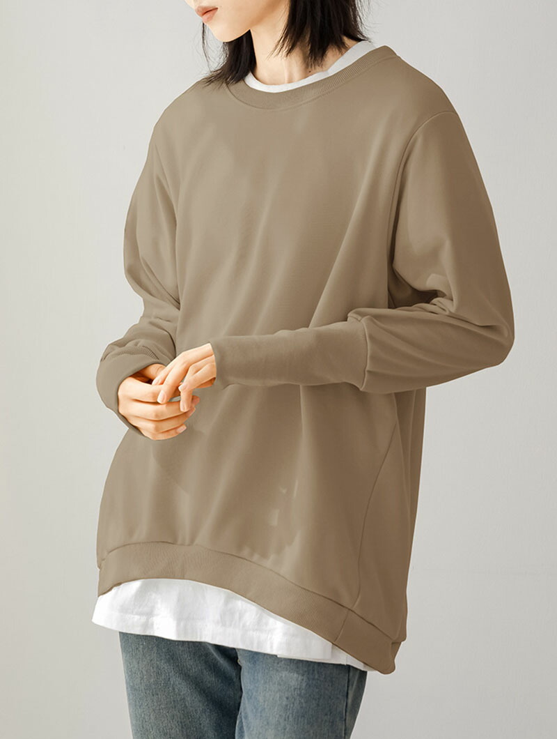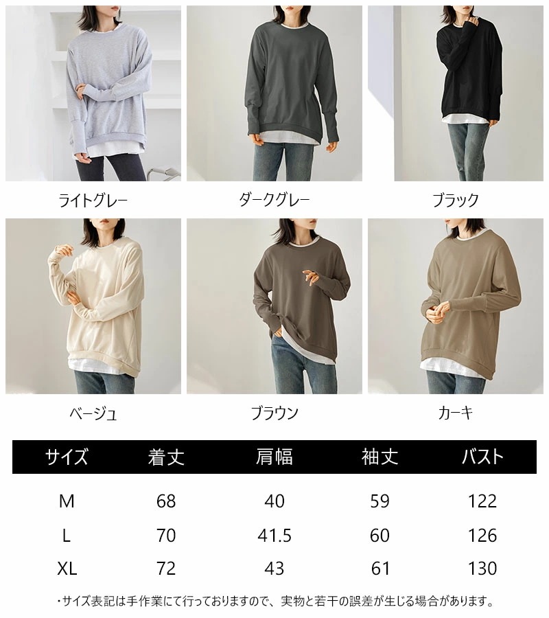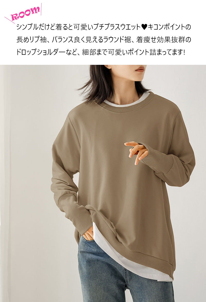 着心地の良ポリエステル混 全6色リニューアル トレーナー レディース スウェット リブ長 トップス 長袖 無地 ルームウェア 部屋着 秋 冬