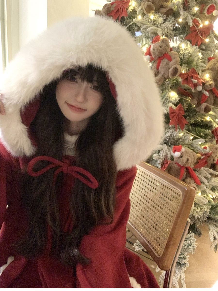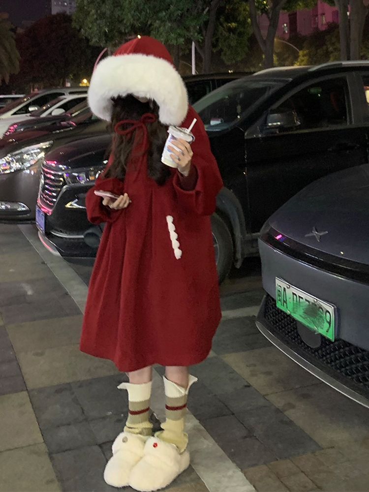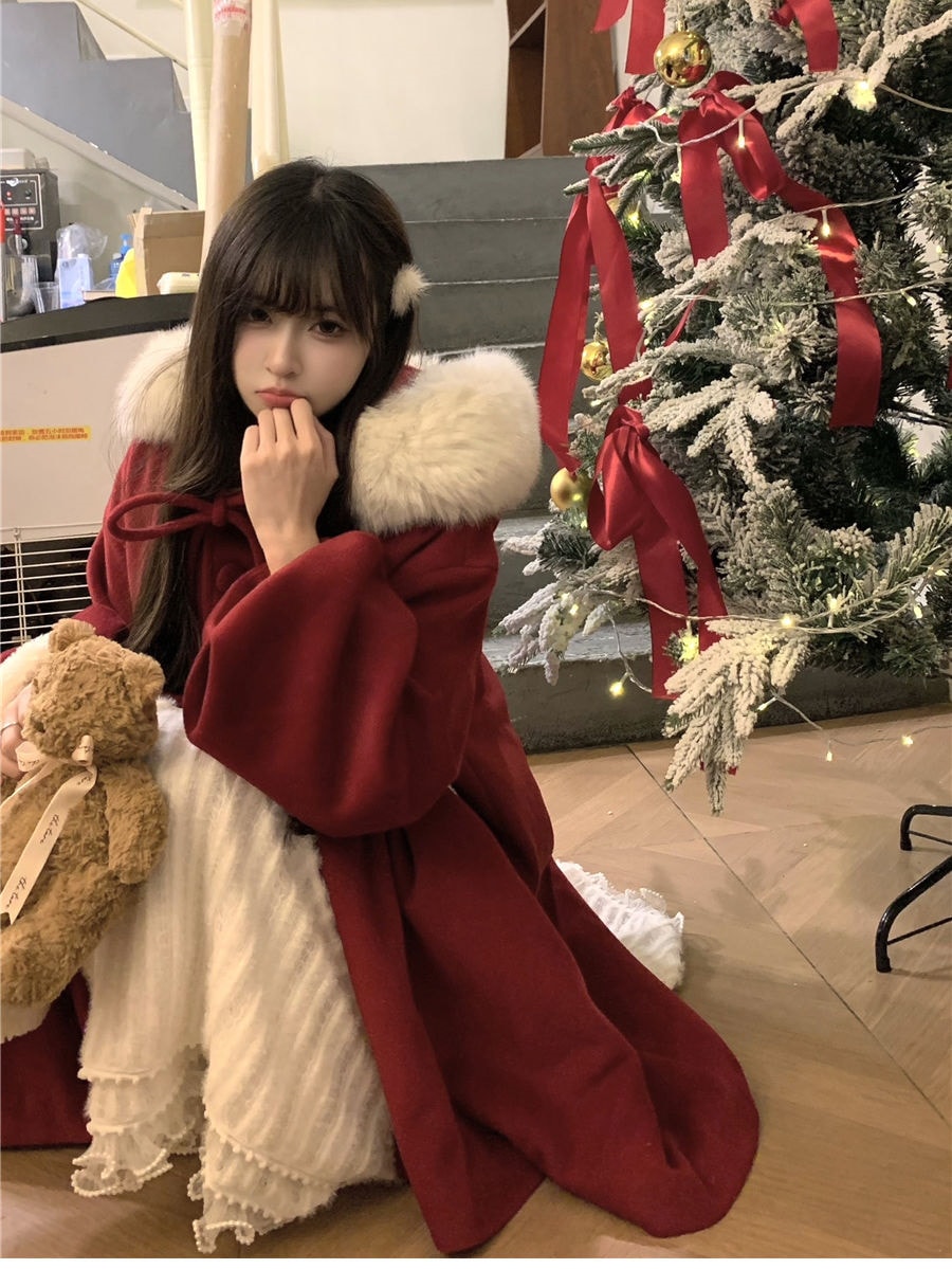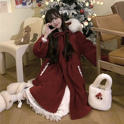 冬アウター 新年 クリスマスのガウン 大毛の襟 キャップ ウールのコート 冬 新しい 高級 あつさを増す ラシャコート かわいい ファッション 快適 コート着