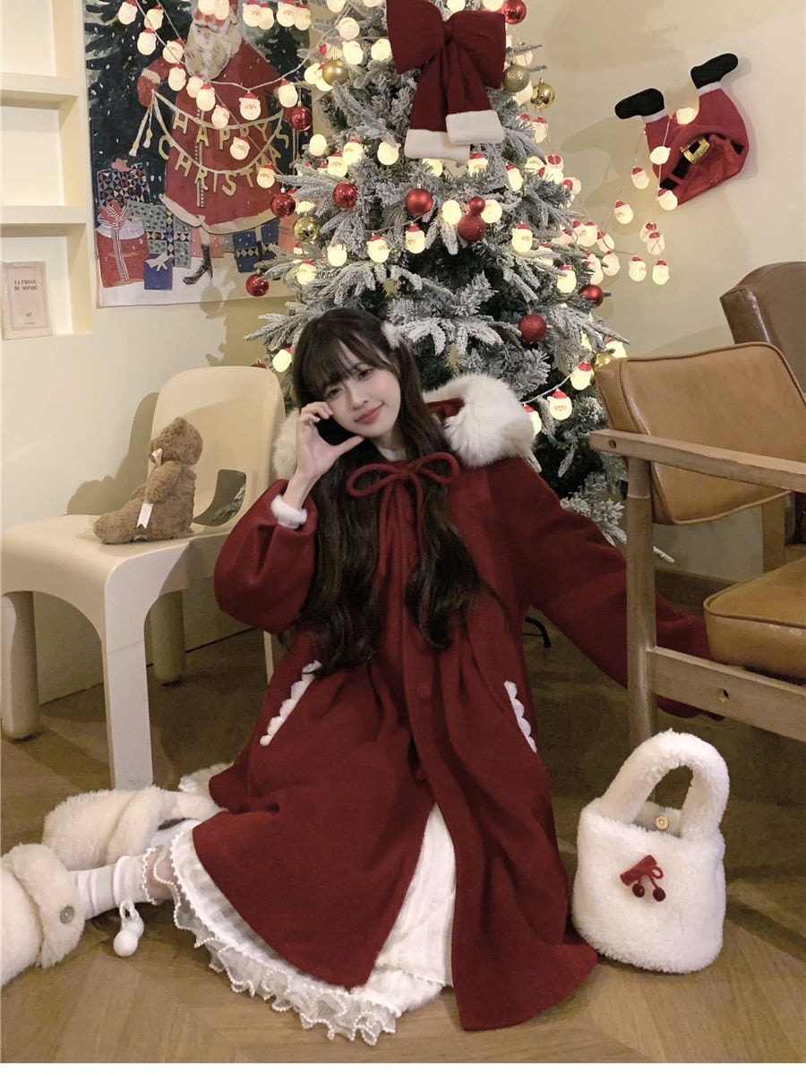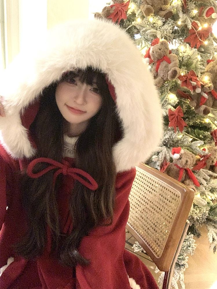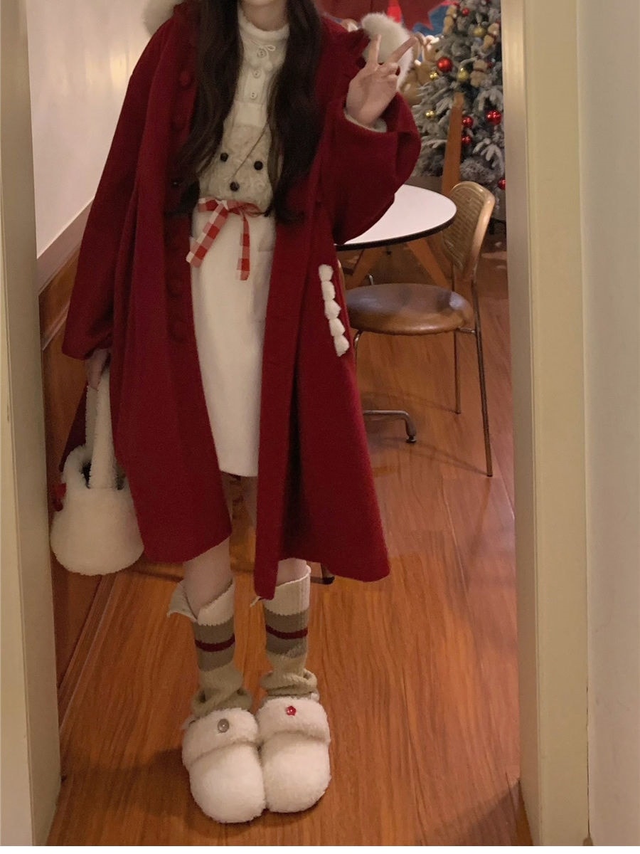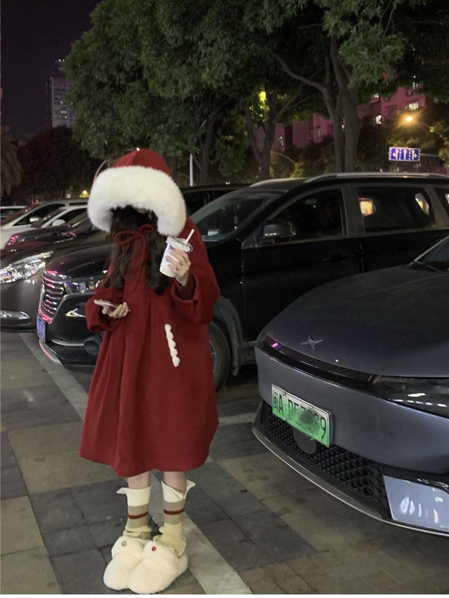 冬アウター 新年 クリスマスのガウン 大毛の襟 キャップ ウールのコート 冬 新しい 高級 あつさを増す ラシャコート かわいい ファッション 快適 コート着
