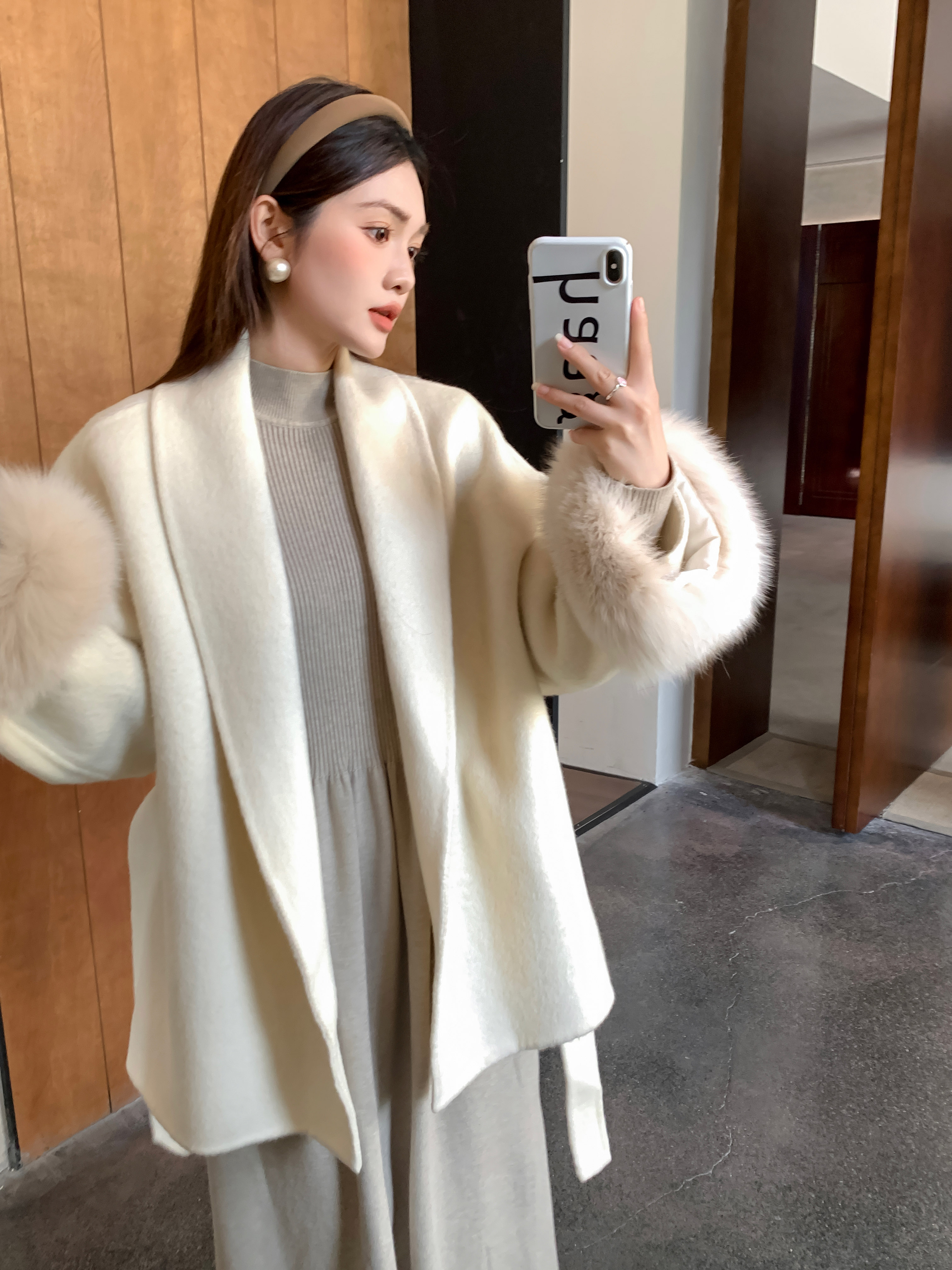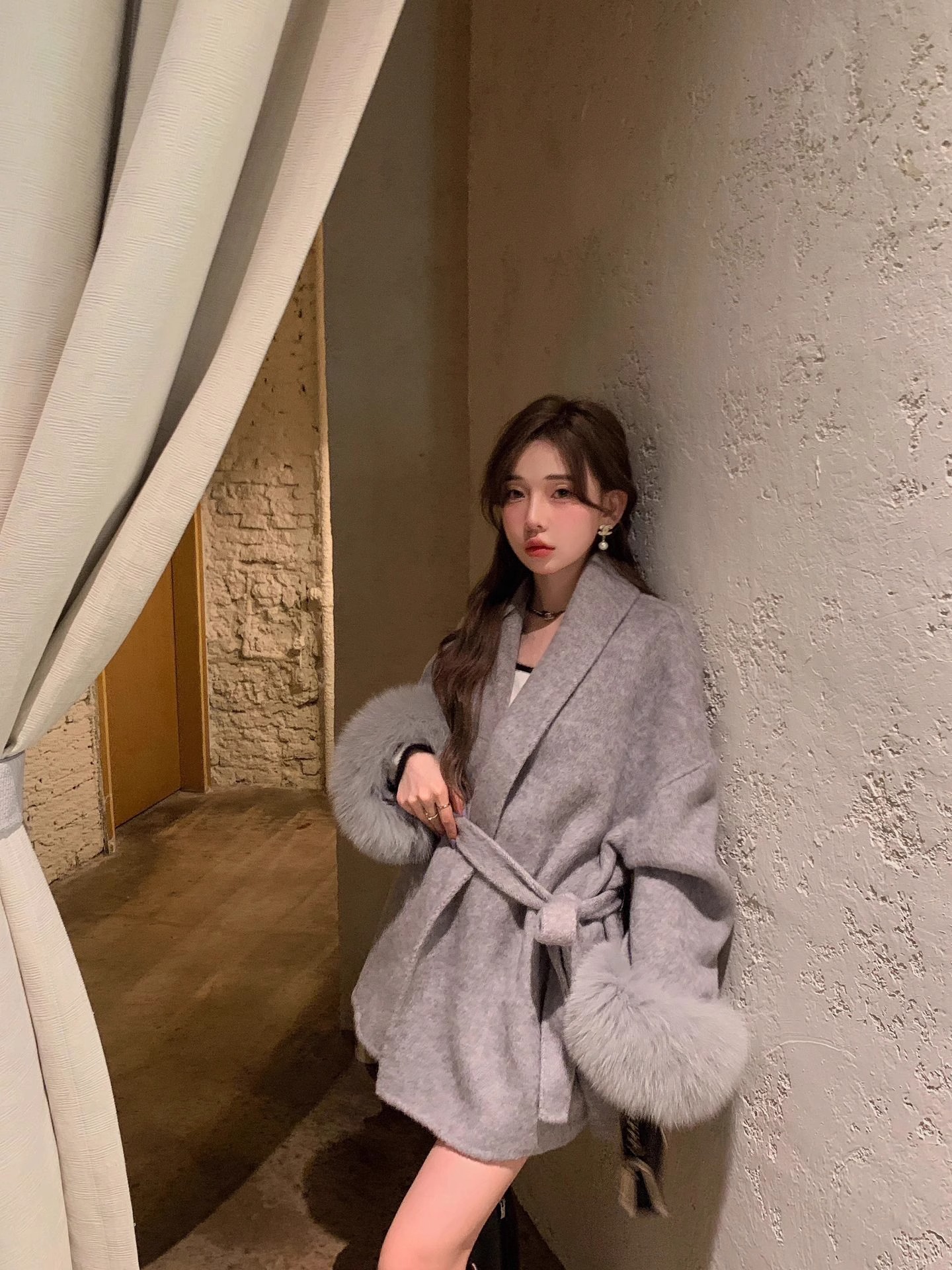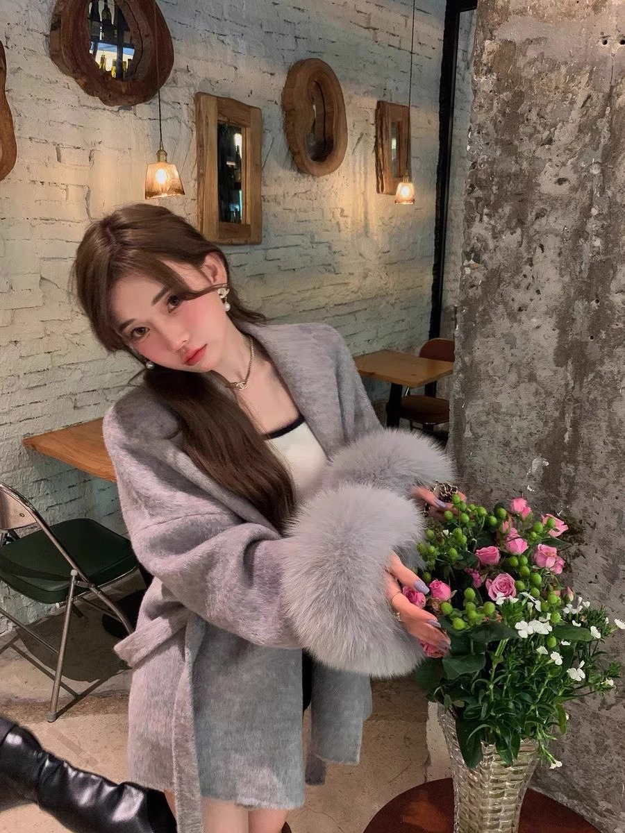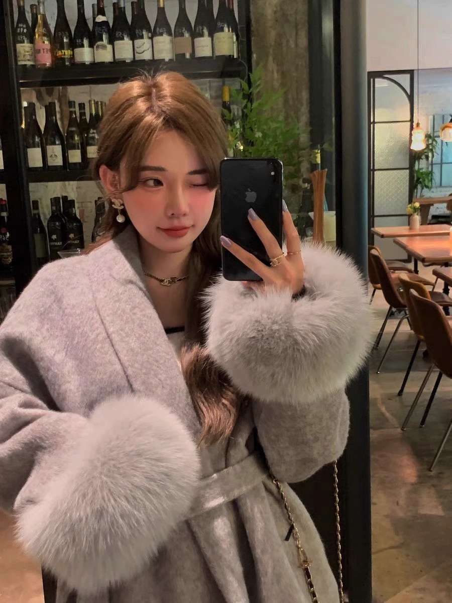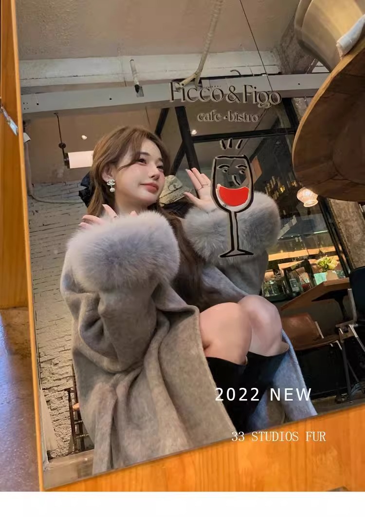 フォックスファー両面カシミヤコートレディースショートウエスト痩身冬ウールコート多用途 その他 アウター