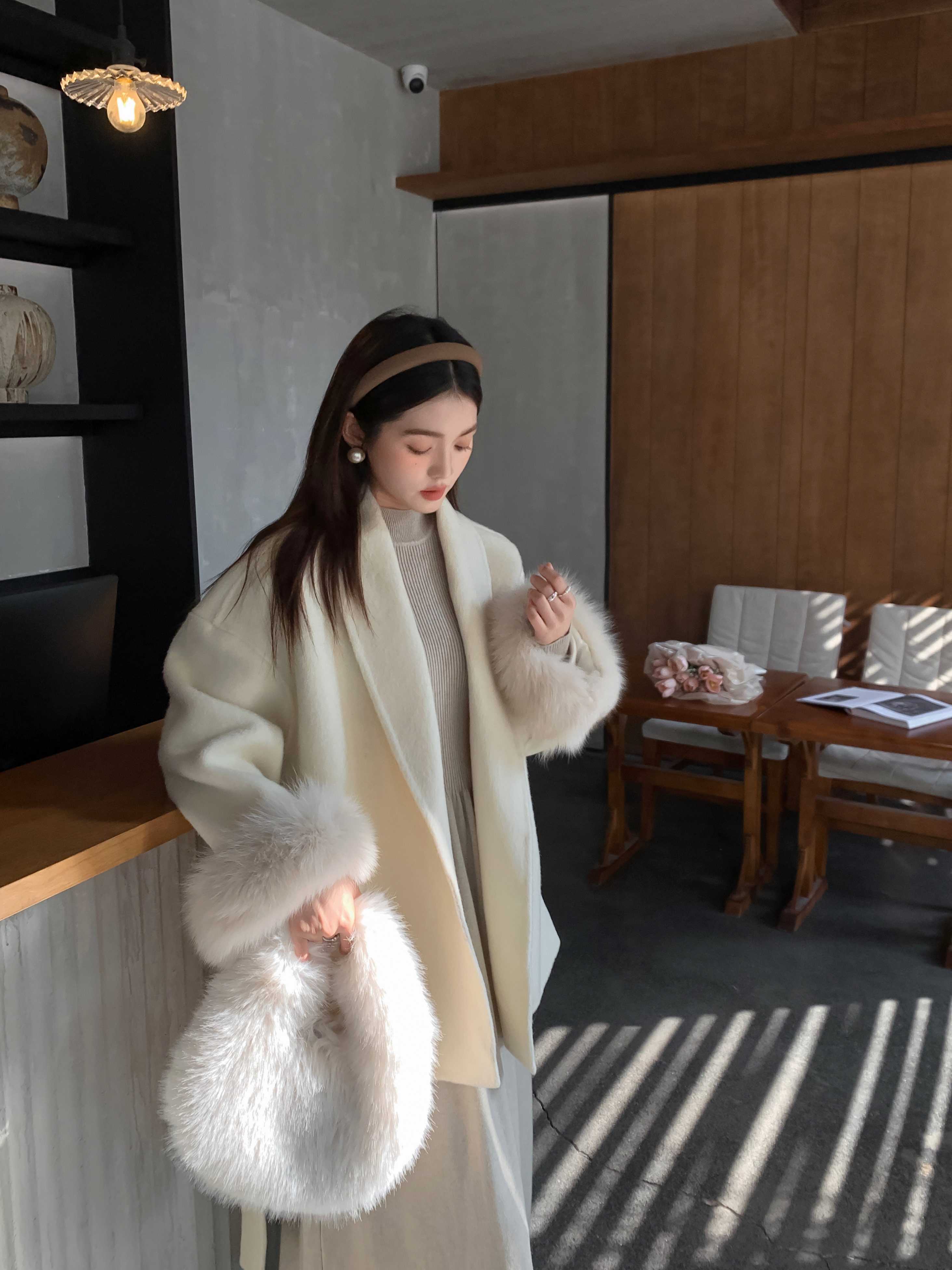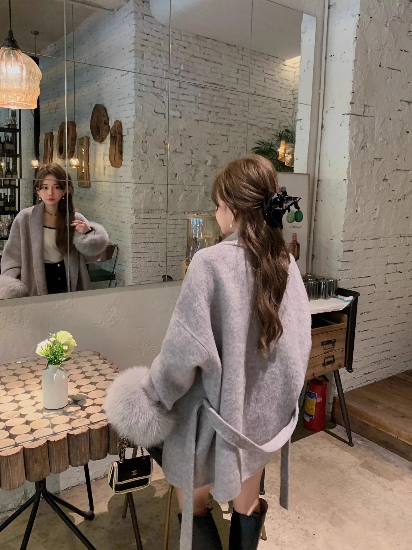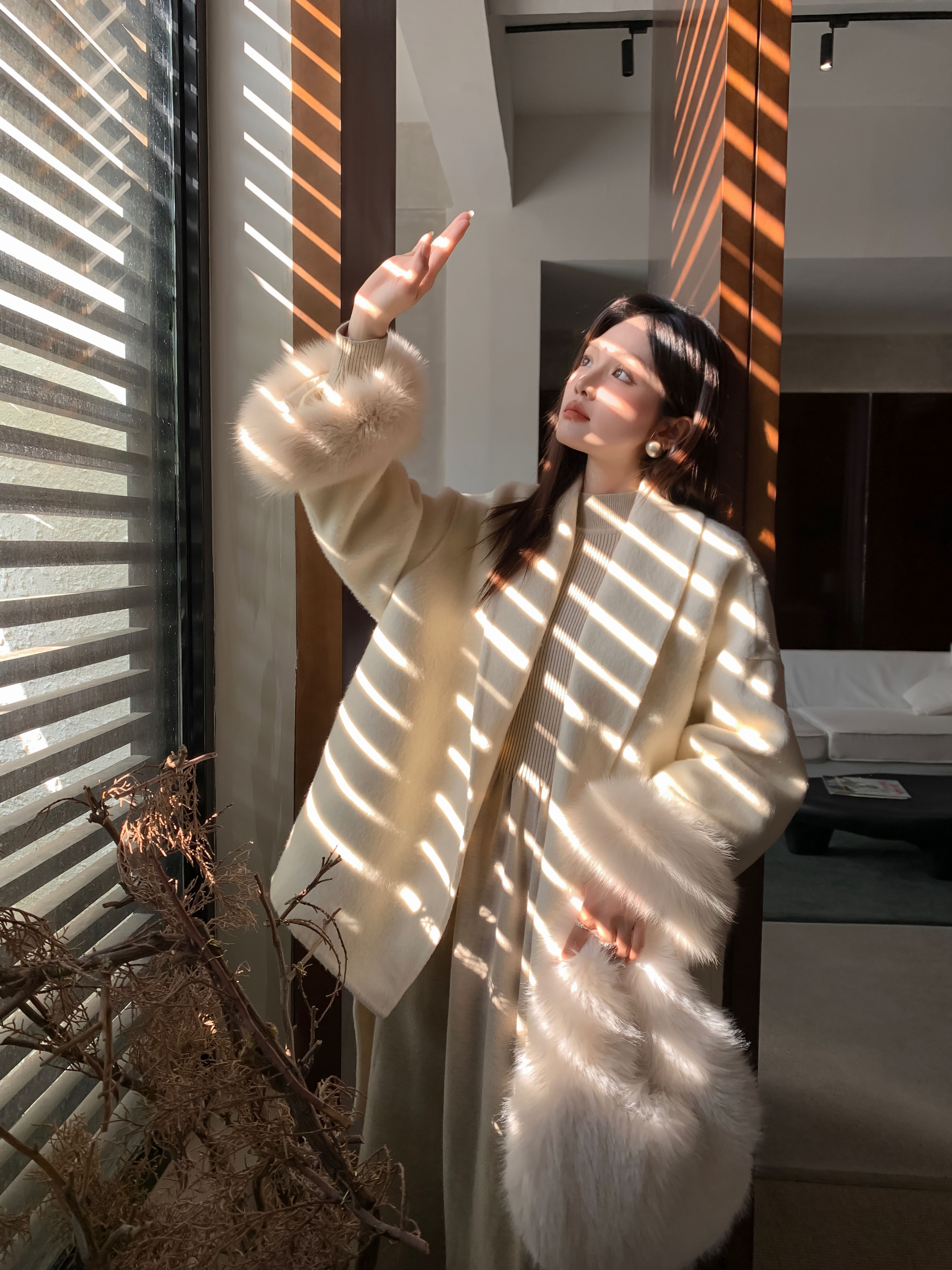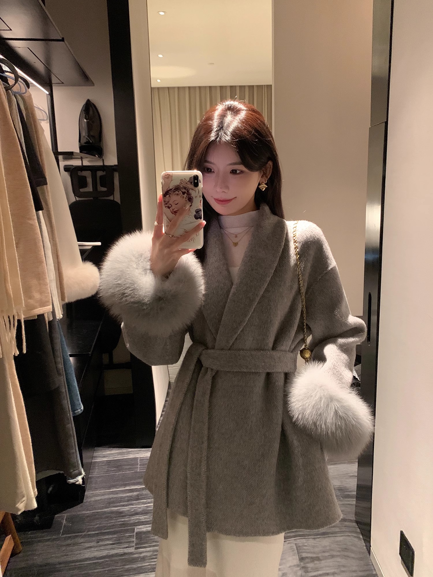 フォックスファー両面カシミヤコートレディースショートウエスト痩身冬ウールコート多用途 その他 アウター