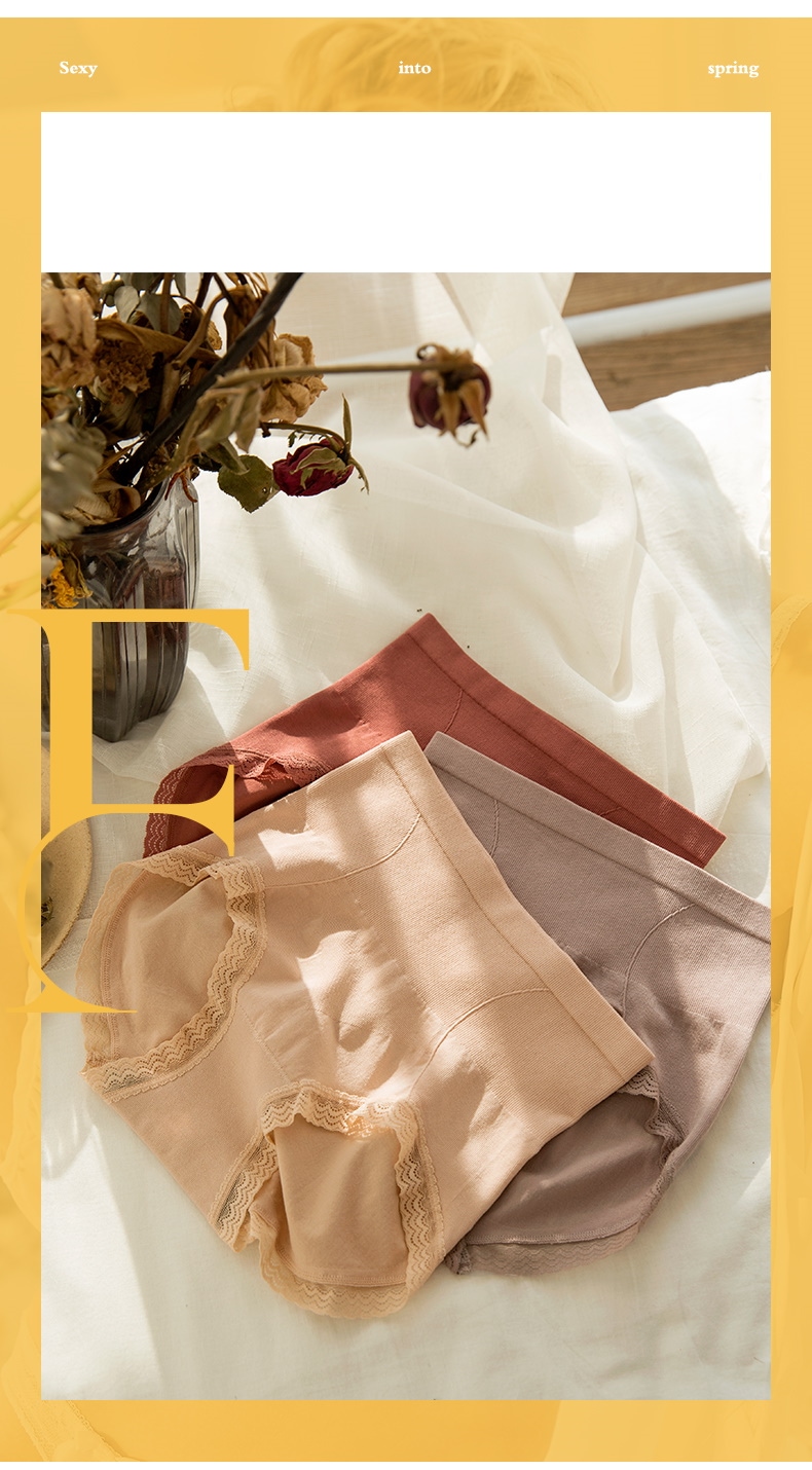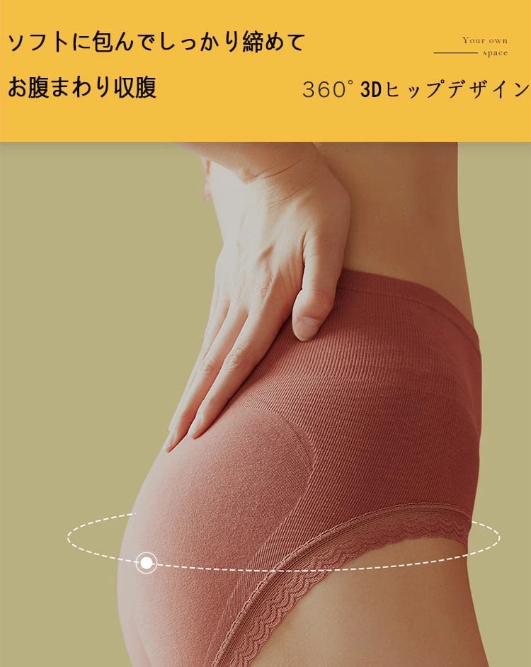 レディースインナー ハイウエストショーツ 3点セット 全6色 フリーサイズ 伸縮 柔軟 フィット 通気性 抗菌効果 ウエストを優しく引き締めお腹を収腹 立体的に引き上げてヒップアップ レースの縁どり