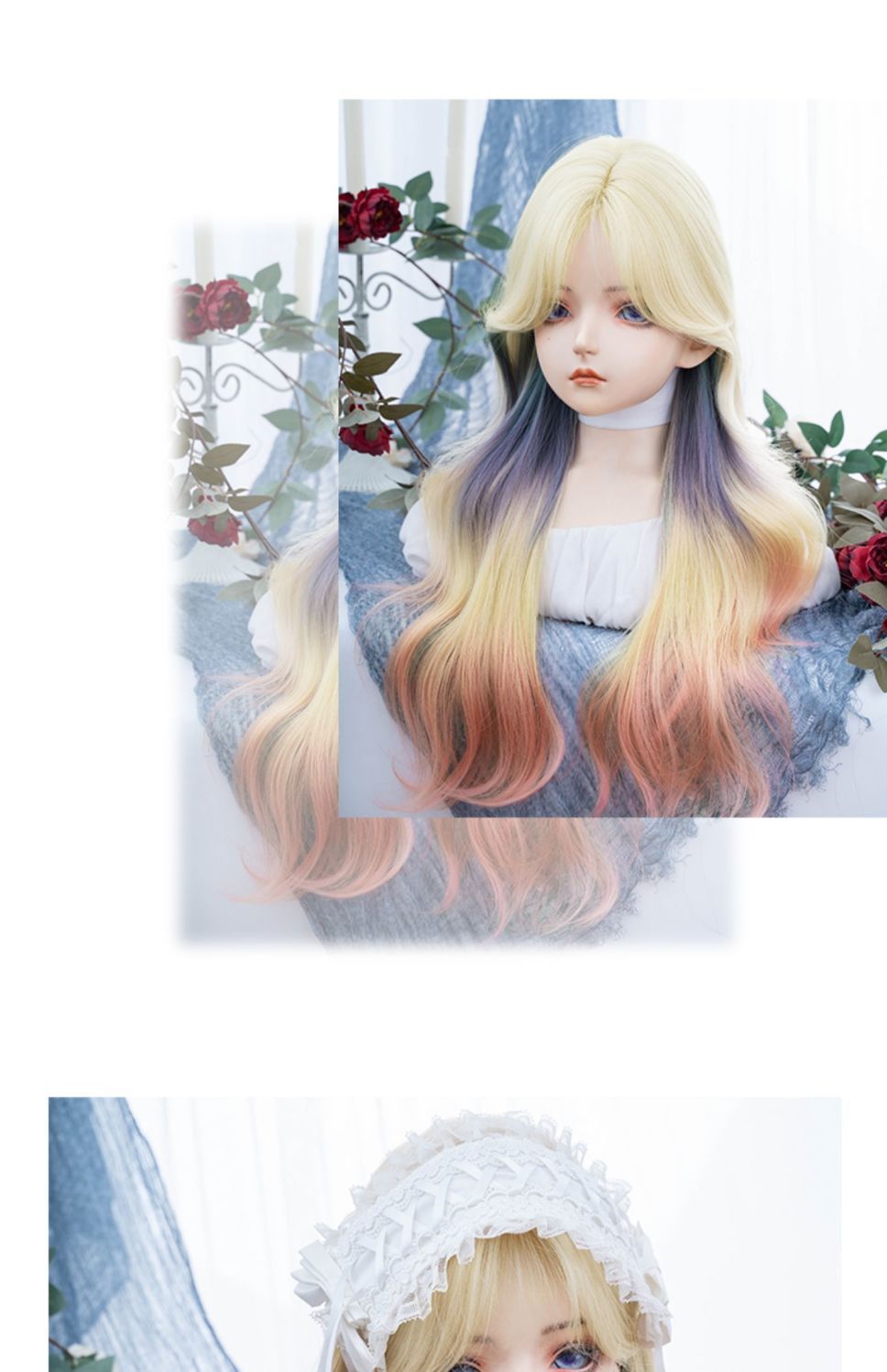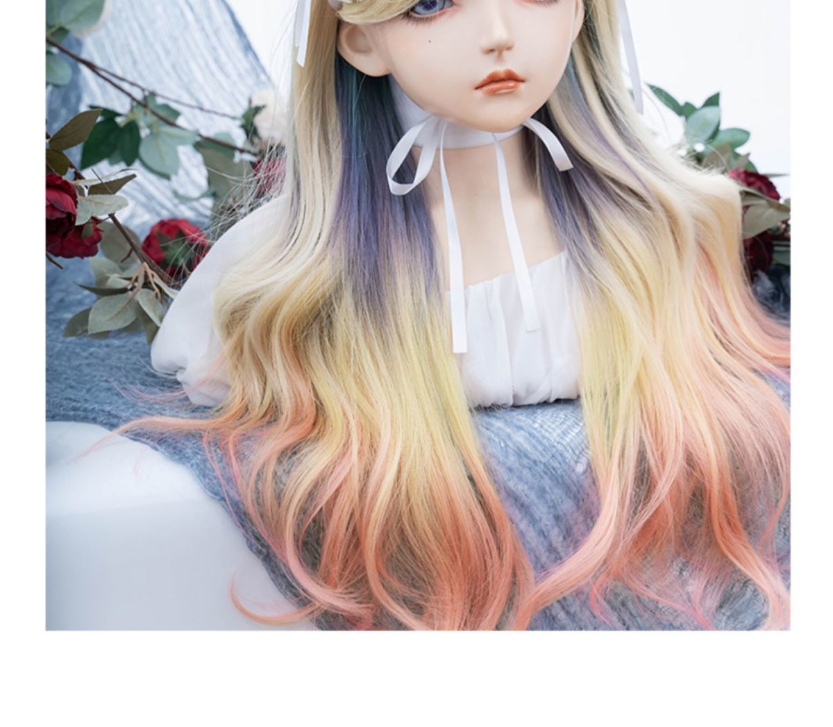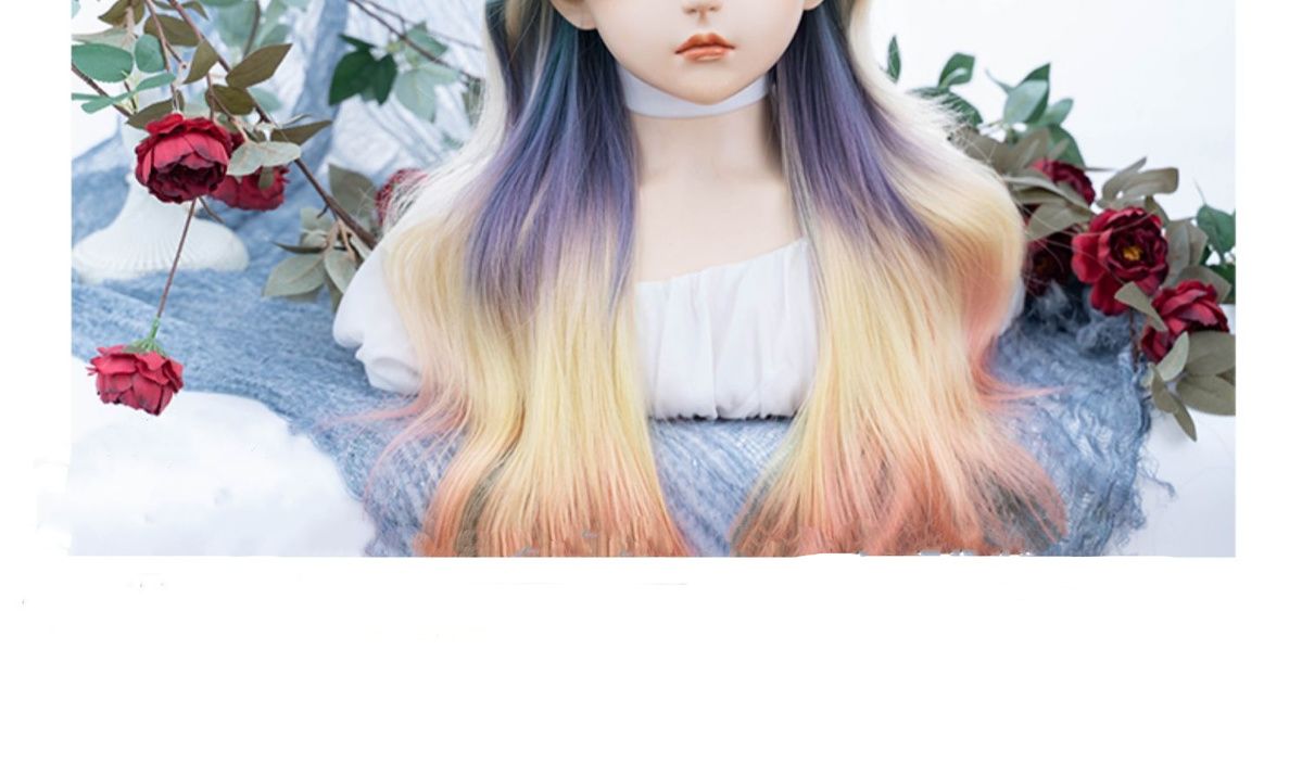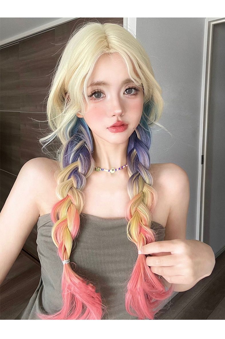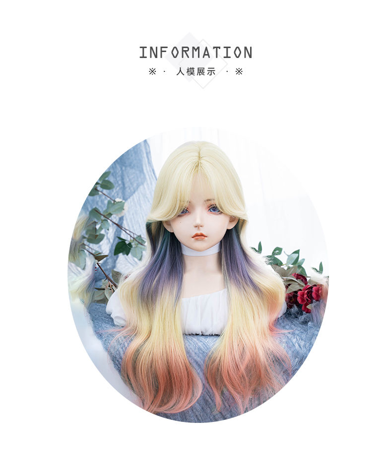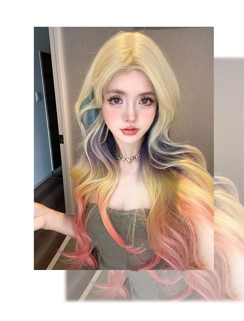 ウィッグ 女性ロングヘアーロリータカラーグラデーション巻き毛JKヘッドギア フルウィッグ