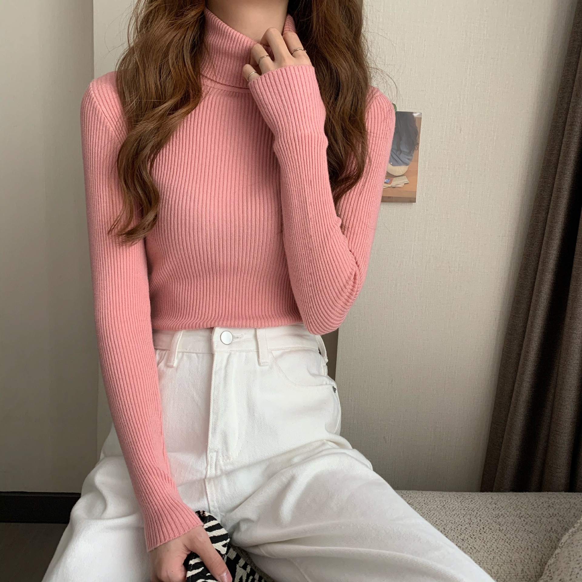 新作 ニットカーディガン ニット セーター ハイネック アンダーウェア インナー 長袖セーター レディース 弾力 百掛け 韓国ファッション 無地