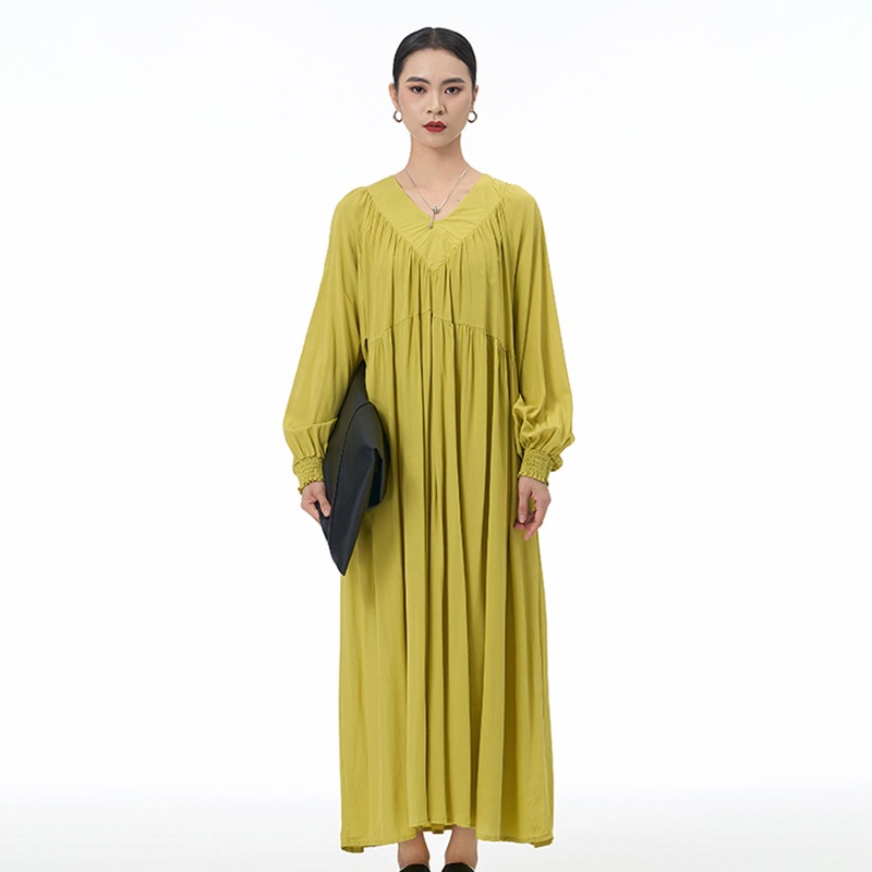 新作 韓国 デザイン 長袖ワンピース ワンピース 高級感 パーティードレス Vネック プリーツ ランタン袖 ワンピース 気質 ラウンドネック 着やせ おしゃれ ワンピース レディース