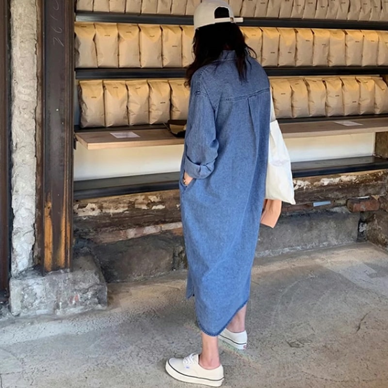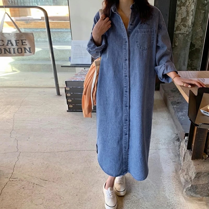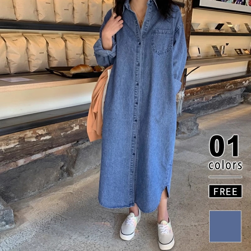 デニムワンピース シャツワンピース ロングワンピース デニム ワンピース 長袖 ロング丈 レディース デニムシャツワンピース シャツワンピ ゆったり