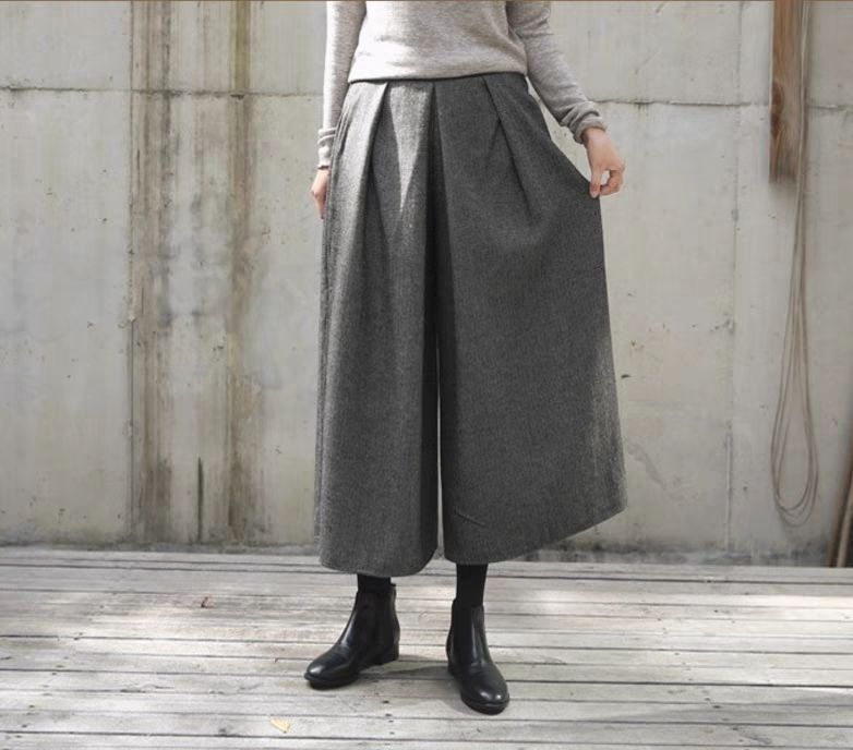 新品 ガウチョパンツ 冬 フレアパンツ スカーチョ 秋冬 ワイドパンツ レディース キュロットパンツ タック スカンツ ウール 防寒 保温 イージーパンツ 大きいサイズ 韓ファッション